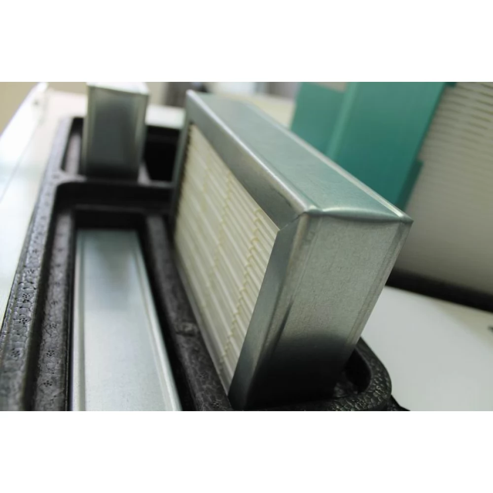 F7-es osztlyú por és pollenszűrő Aerauliqa QR-120P típusú központi hővisszanyerős szellőztető készülékhez. A szűrő könnyen hozzáférhető, porszívó vagy sűrített levegő segítségével tisztítható. A szűrő cseréje egyszerűen, szerszámok nélkül is elvégezhető. Általános esetben a szűrő tisztítása 1-2 havonta egyszer, cseréje 3-6 havonta javasolt. Az Aerauliqa hővisszanyerős szellőztető készülékek szabályzó egysége a tisztítás esedékességét jelzi.