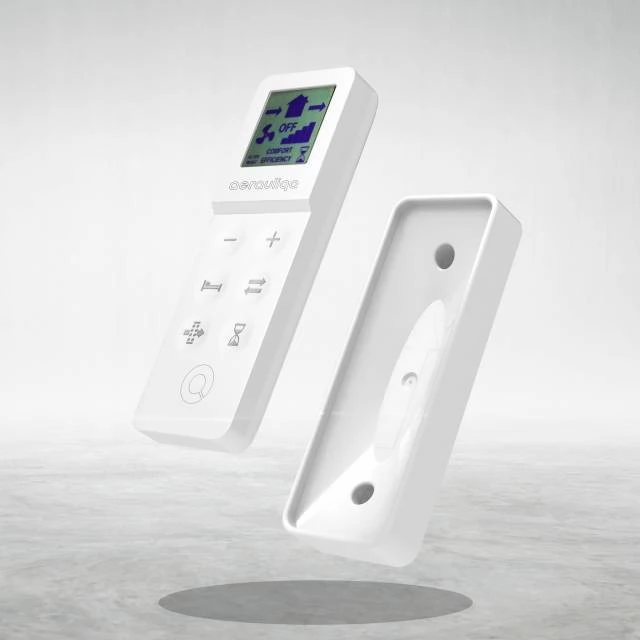 A szellőztetni kívánt lakásban elhelyezett egy vagy több készülék szabályzása a tartozékként hozzáadott távirányító segítségével vagy a termékhez opcionálisan rendelhető Aerauliqa CTRL-HO típusú központi szabályozó egységgel történhet. A távirányítóhoz tartozék egy oldalfalra szerelhető mágneses tartó is!