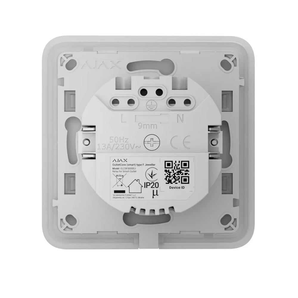 Egy intelligens, beépített aljzat, amely figyeli az áramfogyasztást. Az eszközt Ajax alkalmazásokon keresztül lehet vezérelni. Az aljzat képességei automatizálási forgatókönyvekben mutatkoznak meg a legjobban. Például a rendszer automatikusan bekapcsolhatja az aljzatokat az ütemterv szerint, vagy kikapcsolhatja az összes aljzatot a helyiség élesítésekor vagy tűzjelzés esetén. Az aljzatok használhatók LightSwitch intelligens kapcsolókkal.