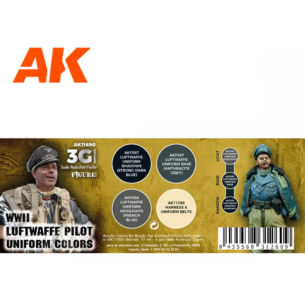 AK INTERACTIVE Figure WWII Luftwaffe Pilot Uniform Colors akrilfesték készlet 4x 17ml