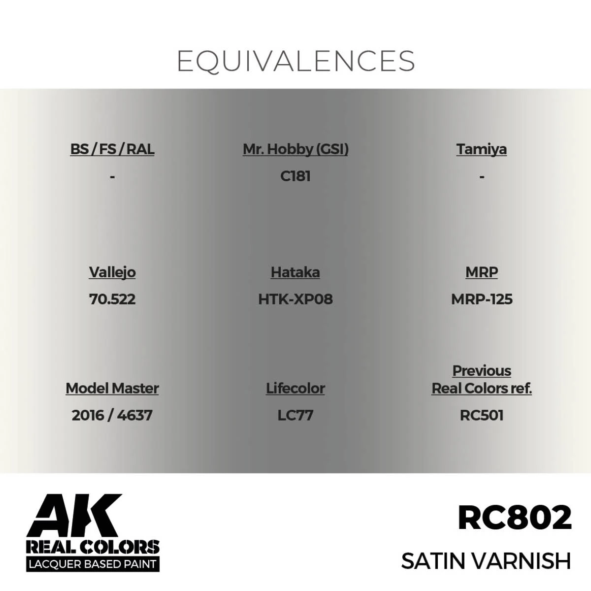 Az AK Interactive Real Colors Lacquer Based Paint sorozatú festékei oldószeres lakk alapúak, egyenletesen oszlanak el a felületen, gyorsan száradnak.