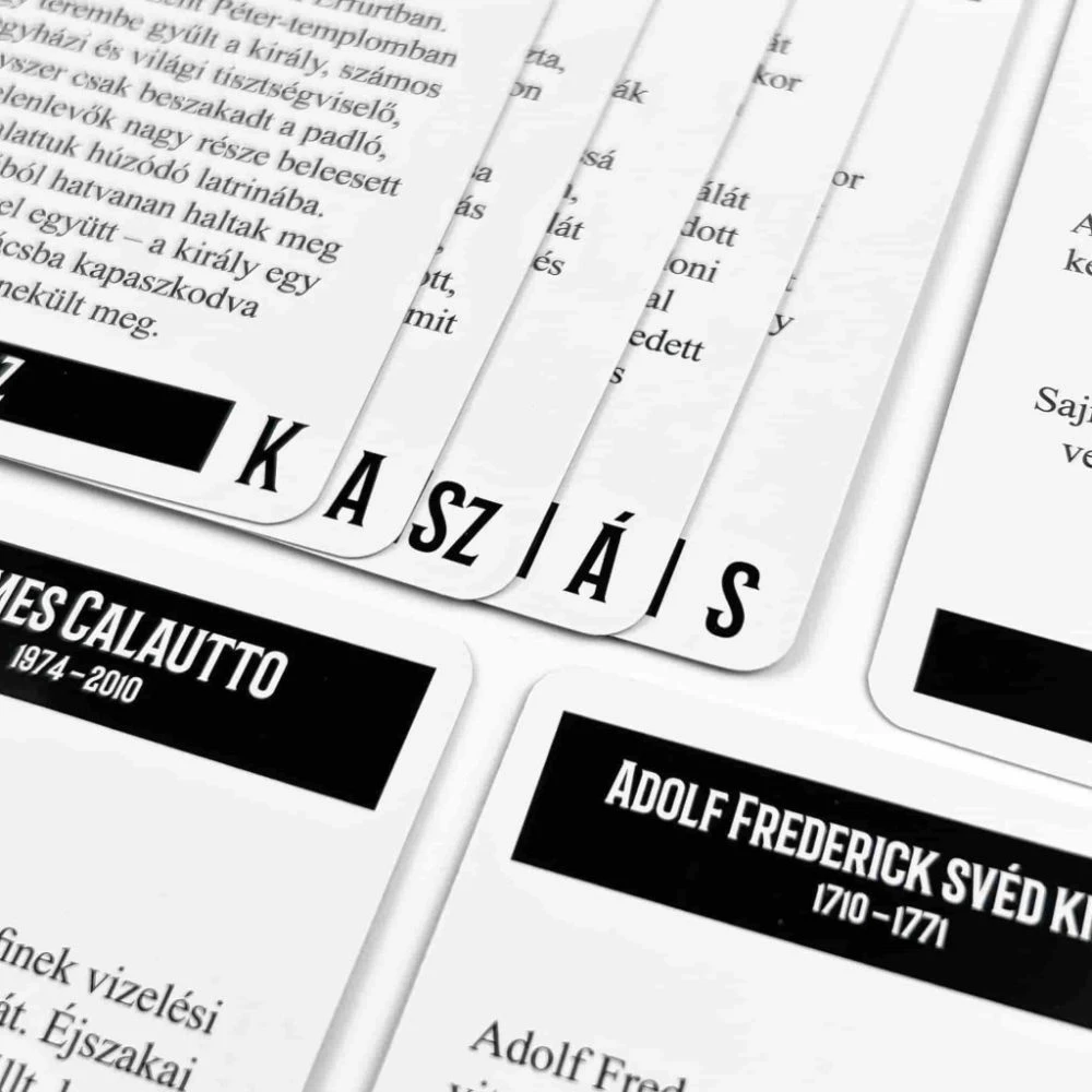 Minden halálesetkártya alsó sarkában van egy betű, ha egy játékos az összegyűjtött kártyáin lévő betűkből kitudja rakni a "KASZÁS" szót, akkor azonnal legyőzi vele a Kaszást.