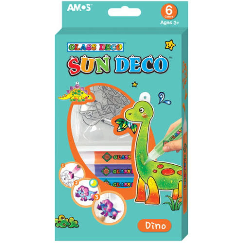 AMOS Sun Deco Dinoszauruszok üvegfestőkészlet 6 darab mintával