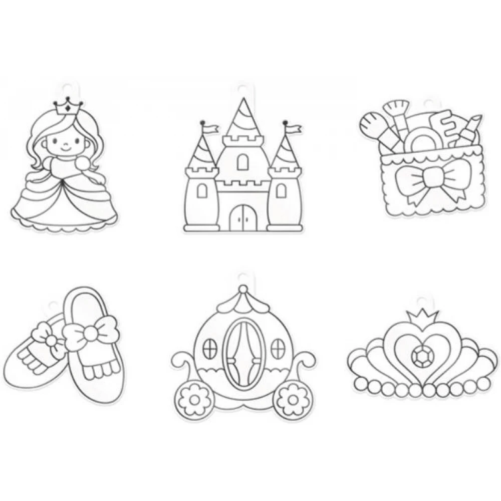 Hercegnős témájú üvegfestőkészlet. A készlet 6 darab 10,5 ml-es üvegfólia festéket és 6 darab mintát tartalmaz.