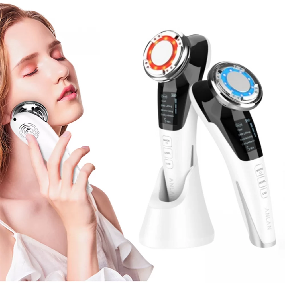 Álmodsz sima, gyönyörű bőrről? Az ANLAN legkeresettebb ultrahangos masszírozójával az új verzióban megszabadulhat a finom ráncoktól, feszessé teszi arcbőrét, és megnyeri a harcot a pattanások ellen! A készülék 5 ápolási módot, 3 hőmérsékleti fokozatot és 2 féle fényterápiát kínál. Ezenkívül lehetővé teszi az EMS mikroáramok intenzitásának 3 fokozatban történő beállítását, és körülbelül 10 000 fordulat/perc frekvenciájú rezgéseket használ. Működtetése egyszerű a beépített kijelzőnek köszönhetően.