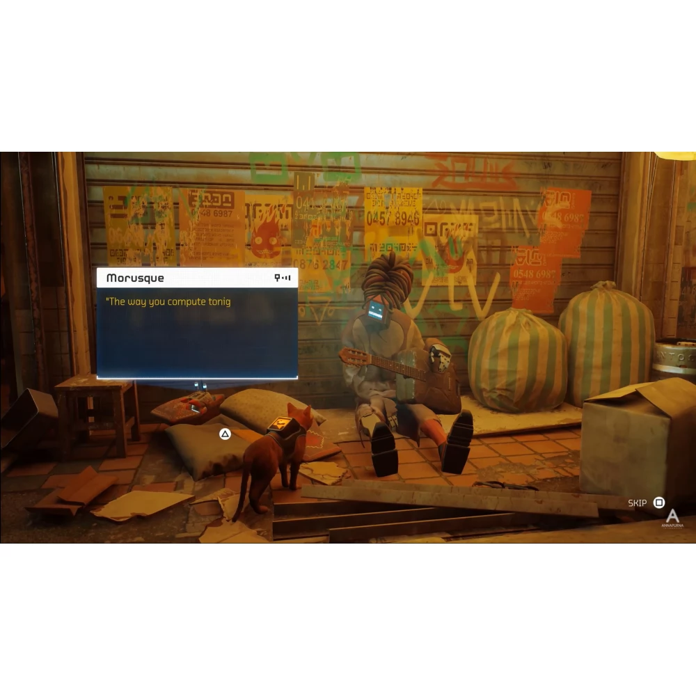 A Stray egy külső nézetes macska-kalandjáték, amely egy pusztuló kiberváros részletes, neonfényes sikátorai között és a nyüzsgő alvilág sötét gyomrában játszódik. Barangold be a környéket magasan és alacsonyan, védekezz az előre nem látható fenyegetésekkel szemben, és fejtsd meg ennek a barátságtalan helynek a titkait, amelyet kiváncsi droidok és veszélyes lények laknak.