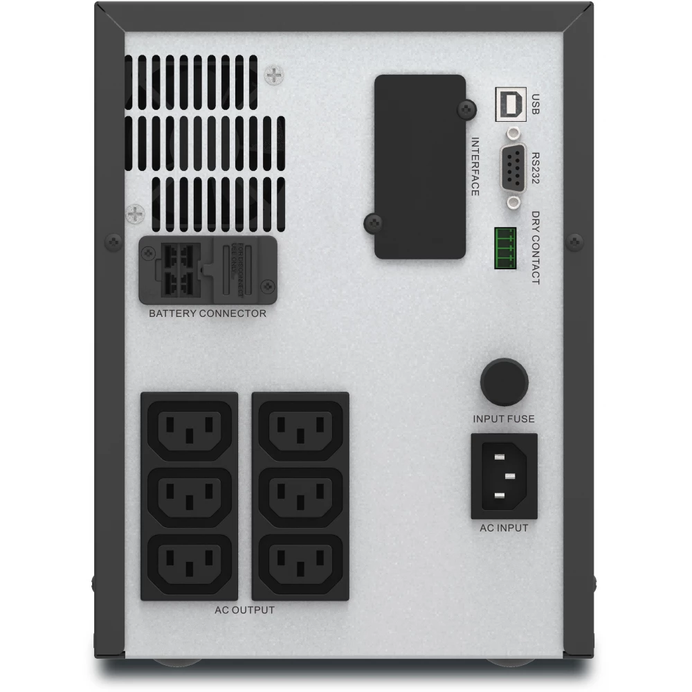 - Kimeneti csatlakozások: 6 darab IEC 320 C13 (Akkumulátoros tartalék)
