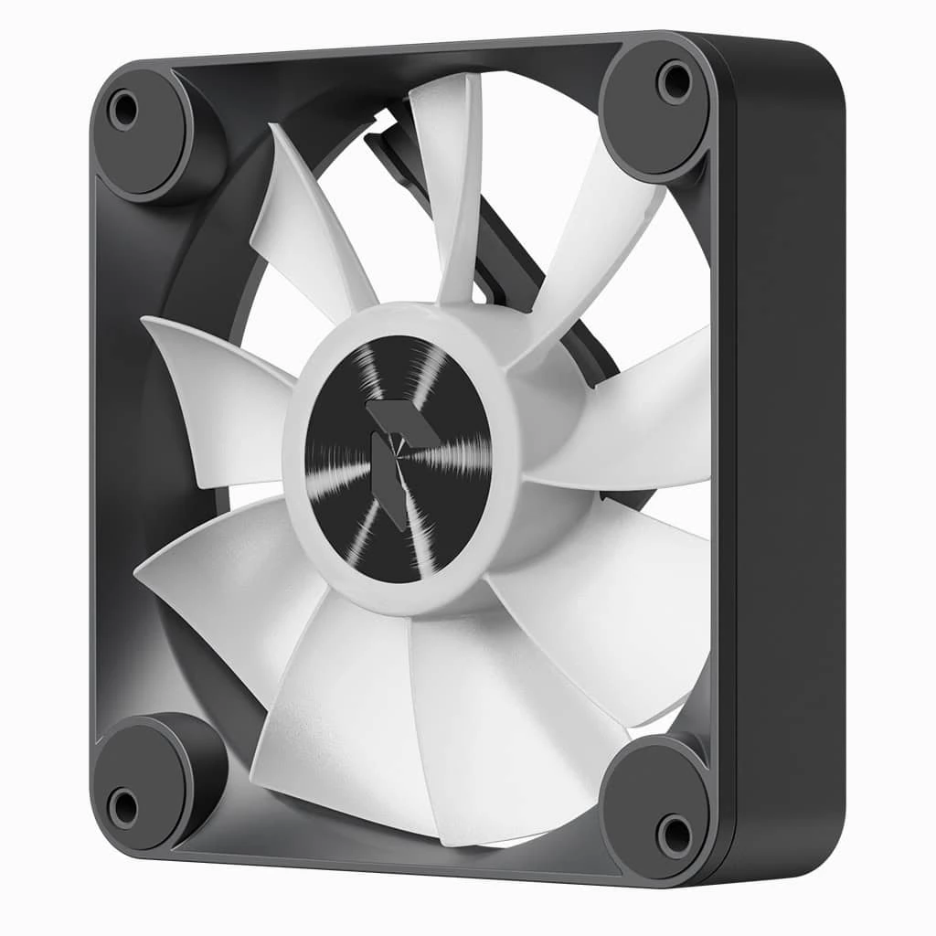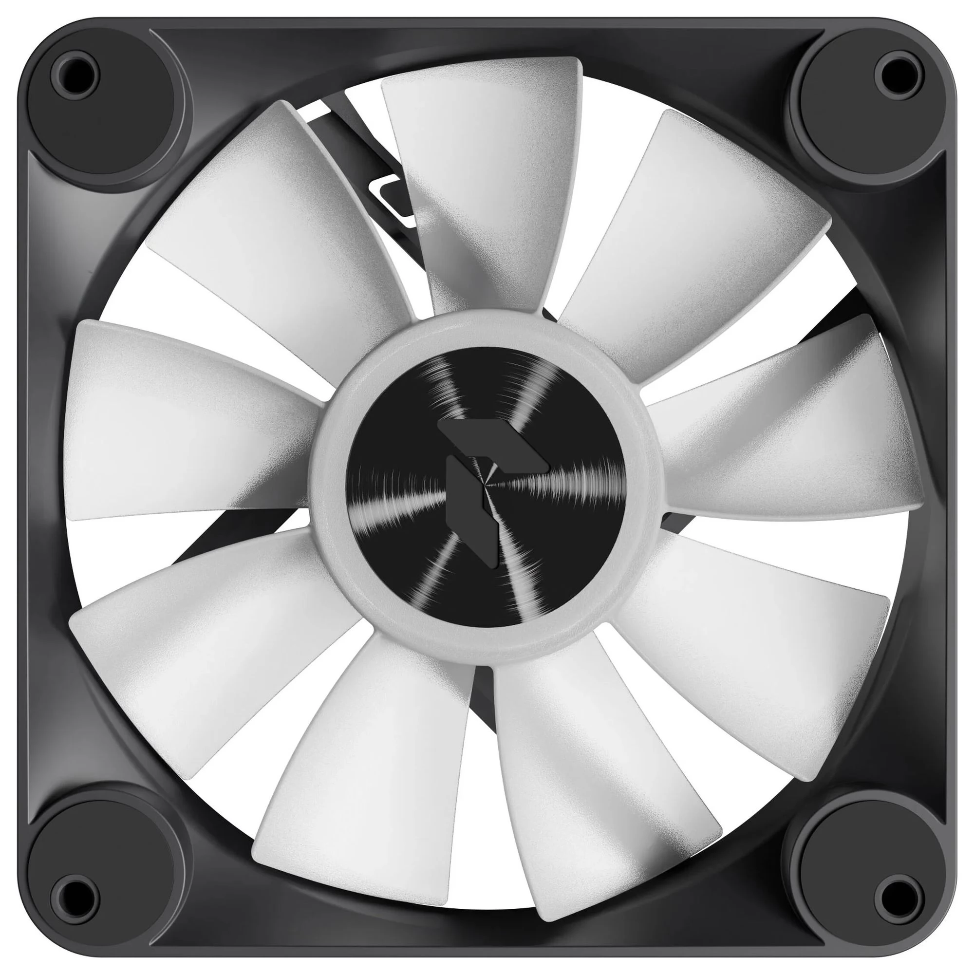 120mm-es, 30mm vastag házhűtő ventilátor vezérelhető ARGB világítással (lapát) és PWM sebesség szabályzással. A hűtő további különlegessége a vastag rezgéscsillapítós felfogatók.