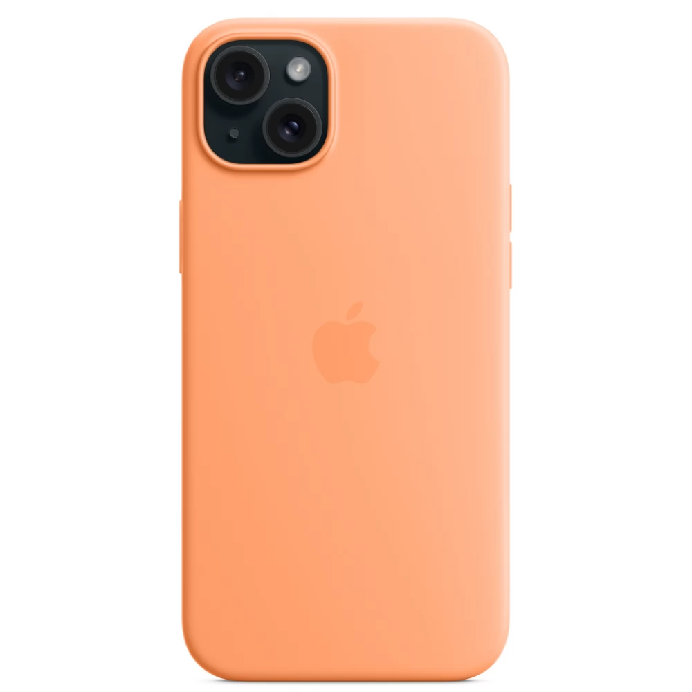 APPLE MagSafe rögzítésű szilikon tok iPhone 15 Plus narancssörbet