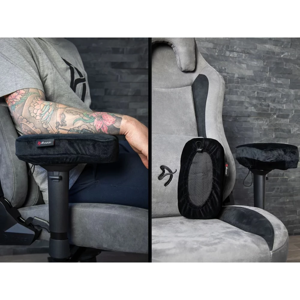 Ha úgy érzi, hogy az eredeti műanyag karfa sok széken túl kemény, akkor ez a tökéletes megoldás, és nagymértékben javítja a kényelmet. A párnázás 100%-ban memóriahabból készült, és kényelmesen körülveszi a karját és könyök, tehermentesítve a nyomáspontokat. A körülötte lévő burkolat anyaga légáteresztő bársony poliészter.