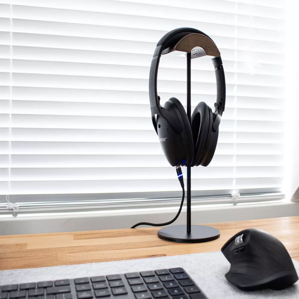 Bízd a fülesed a masszív aluminium vázra és ne félj többé attól, hogy a töltőkábel szépen lassan lehúzza az asztalról a drága fülhallgatódat.