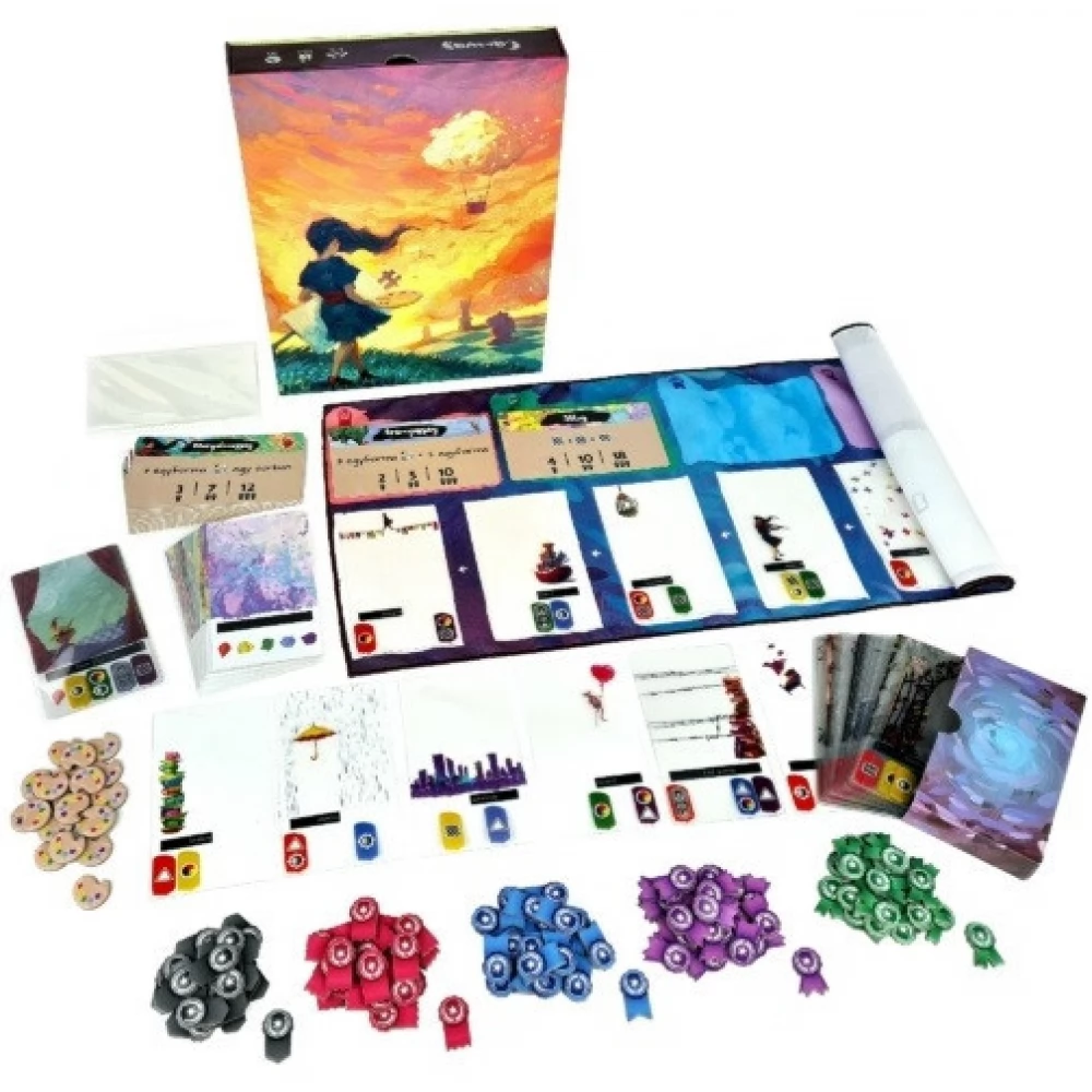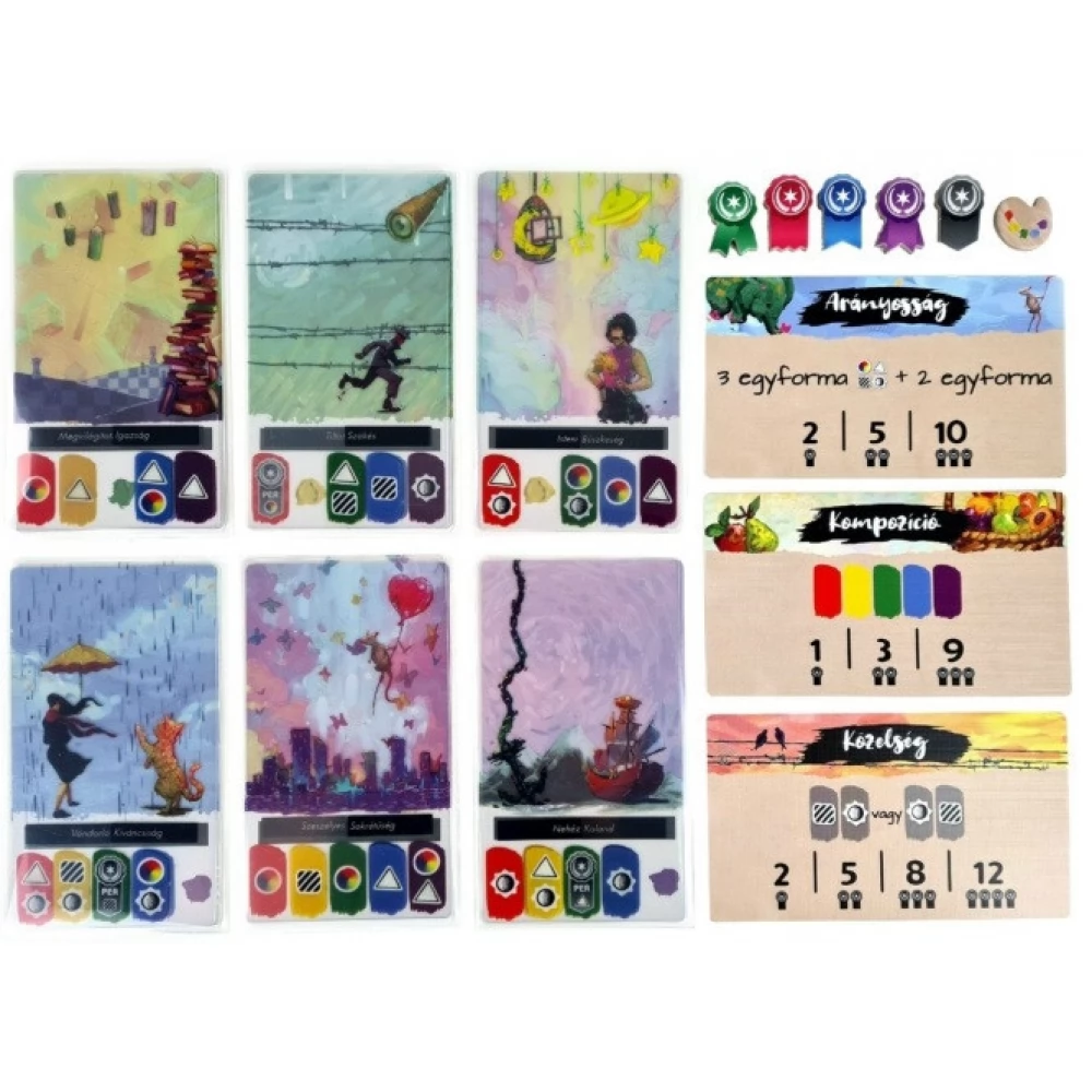 A művészet társasjátékában tényleg minden játékos alkothat valami szépet és izgalmasat: valódi műalkotást pillanatok alatt, és még pont is jár érte. Persze nem egy szakmai zsűri előtt kell szerepelni, hanem okosan egymásra helyezgetni a festmény rétegeit alkotó lapokat.