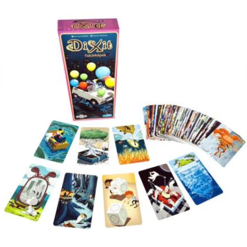 A Dixit Tükörképek kiegészítő segítségével a népszerű, Év játéka díjas asszociációs társasjátékot új festményekkel bővíthetjük.