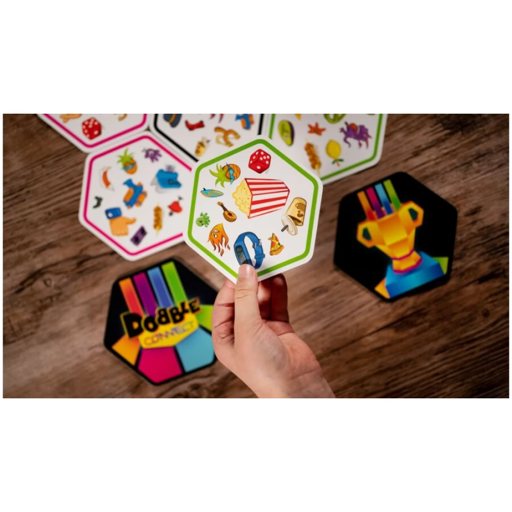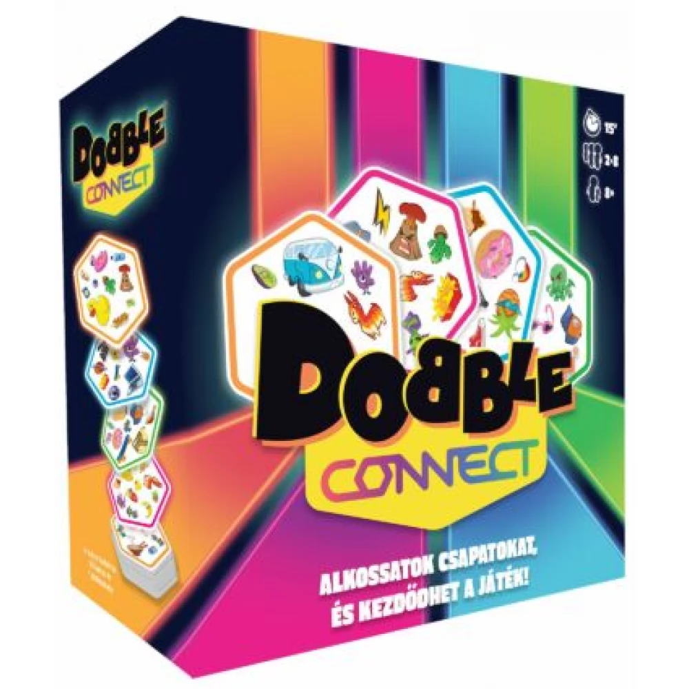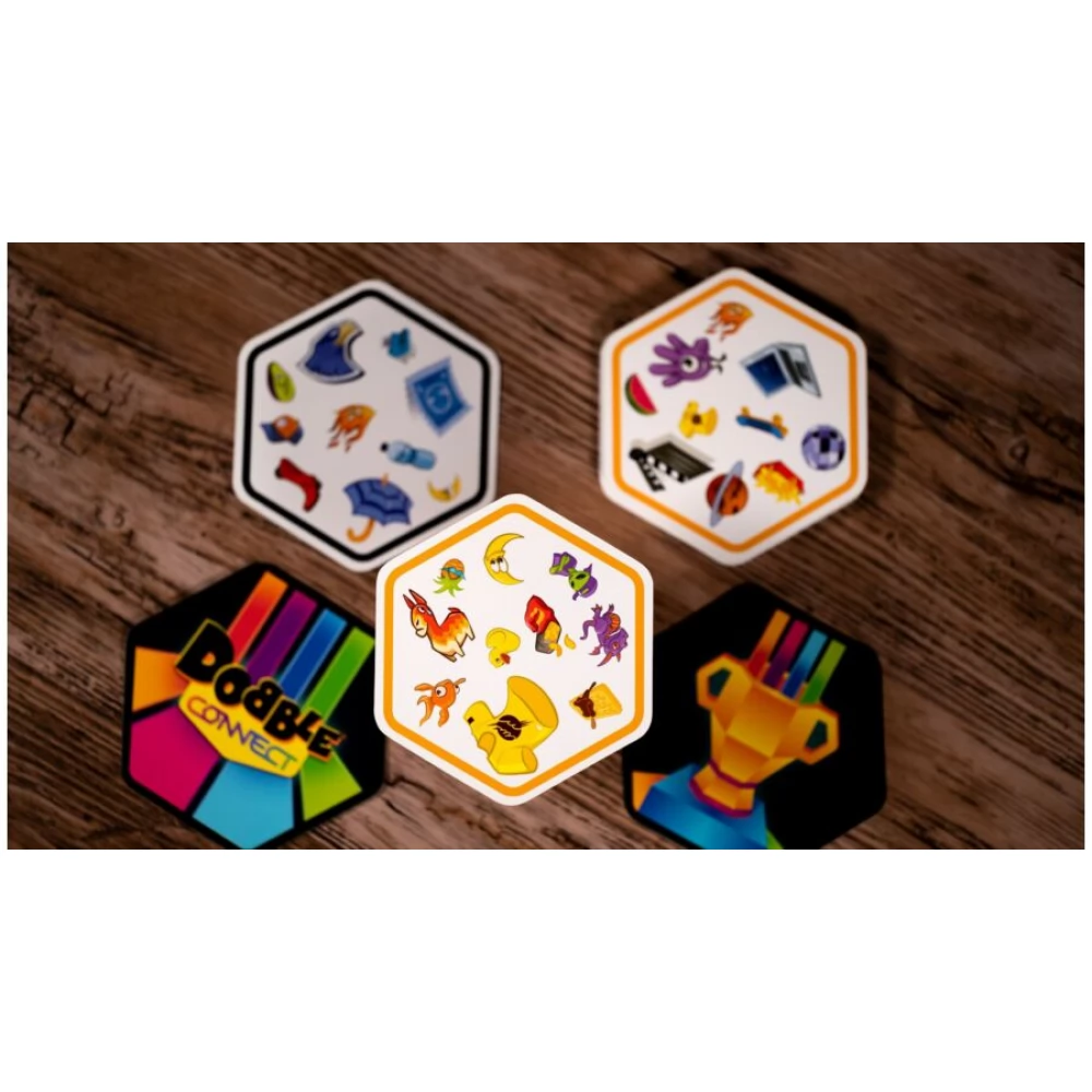 A Dobble Connect a nemzetközi sikerjáték és az amőba különleges találkozása. A játékosok egyénileg vagy csapatban igyekeznek sorokat kialakítani a jól ismert Dobble-szabályok szerint. A koncentrációt és a reflexeket fejlesztő társasjáték.