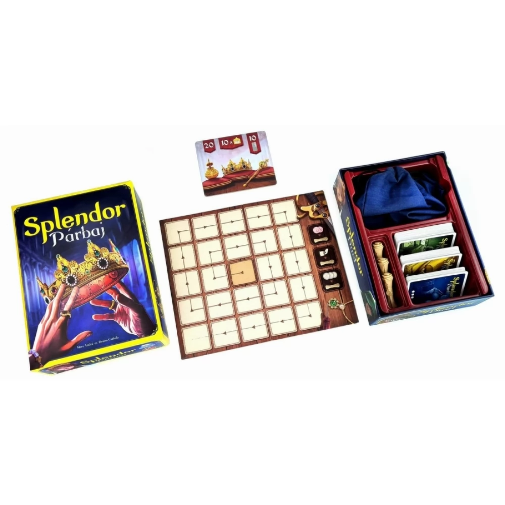 A Splendor: Párbaj könnyen tanulható, kétfős társasjáték. Reneszánsz kereskedőként, fej-fej mellett keresitek a nemesség kegyeit. Szállj szembe a rivális céhekkel a győzelemért folytatott versengésben. Vegyél magadhoz drágakő- és gyöngyjelzőket a közösből, majd vásárolj kártyákat, gyűjts bónuszokat, szerezz királyi kegyet és presztízst.