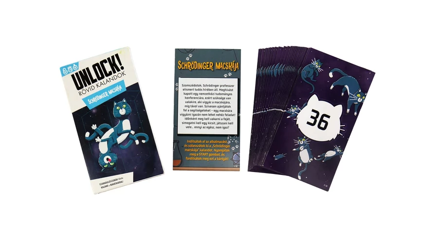 Az Unlock! – Rövid kalandok: Schrödinger macskája szabadulószobák ihlette, zsebre vágható, közepes nehézségű társasjáték. A játékosoknak együtt kell megoldaniuk a különböző feladatokat, hogy tovább haladhassanak a történetben, felfedezhessék annak rejtelmeit. Segítségükre van egy ingyenes, interaktív telefonos alkalmazás, amelyben különleges feladatokat is megoldhatnak, és segítséget is kaphatnak, ha megakadnak.