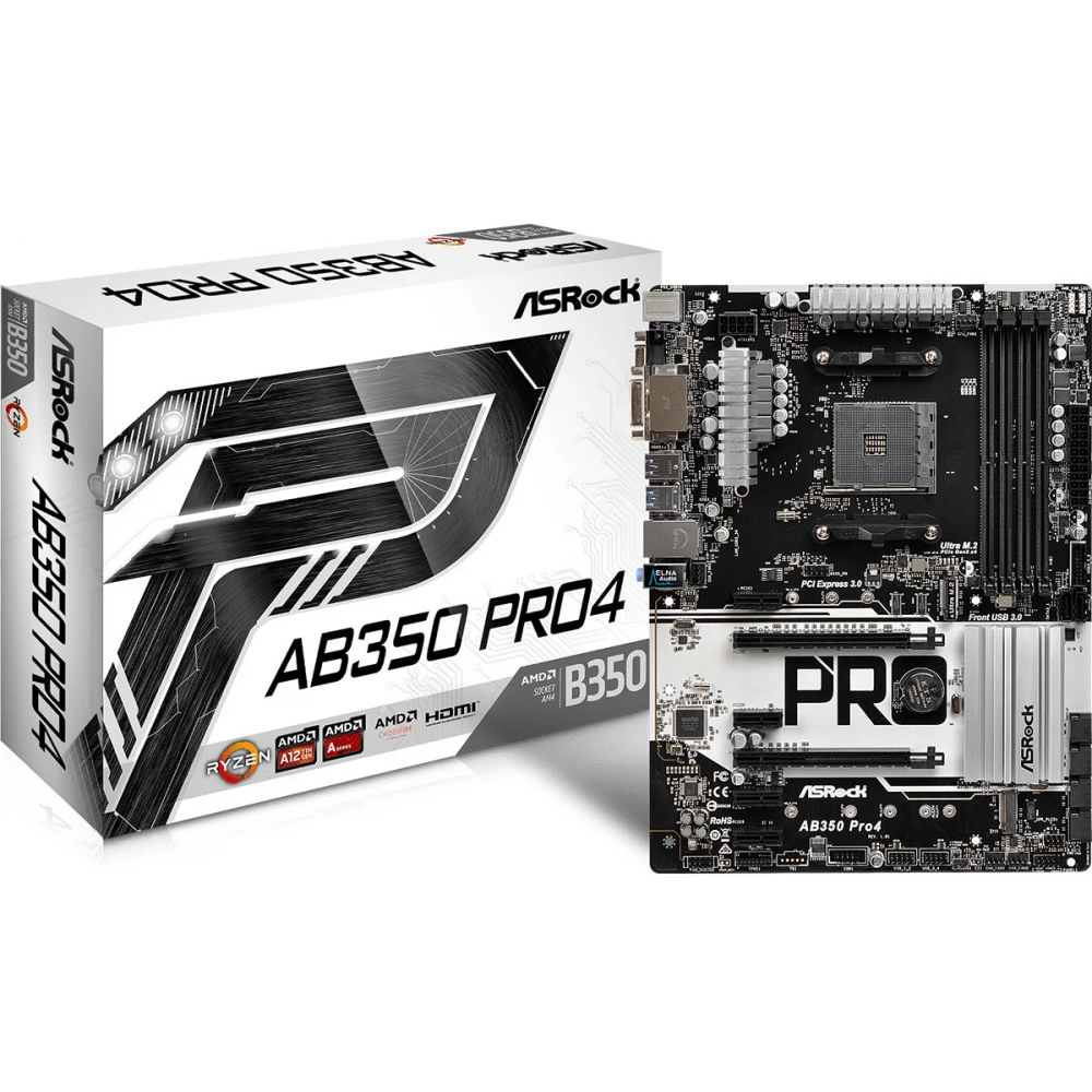 ASROCK AB350 Pro4 típusú alaplap Socket-AM4 foglalattal, AMD B350 chipsettel, Processzorban integrált videókártyával, 4 darab DDR4 memóriafoglalattal (max 64GB). 6 darab USB 2.0 port, 8 darab USB 3.0 port.