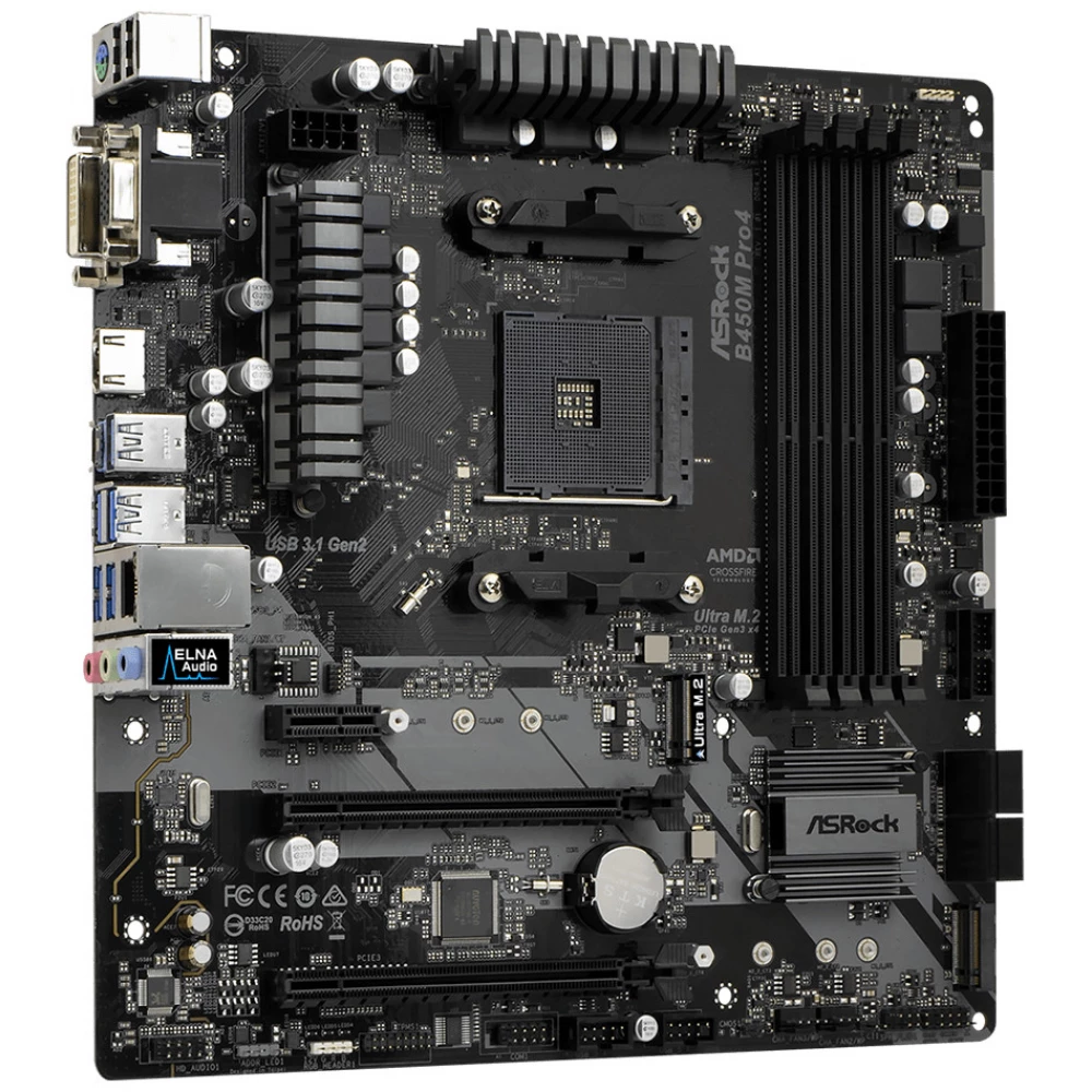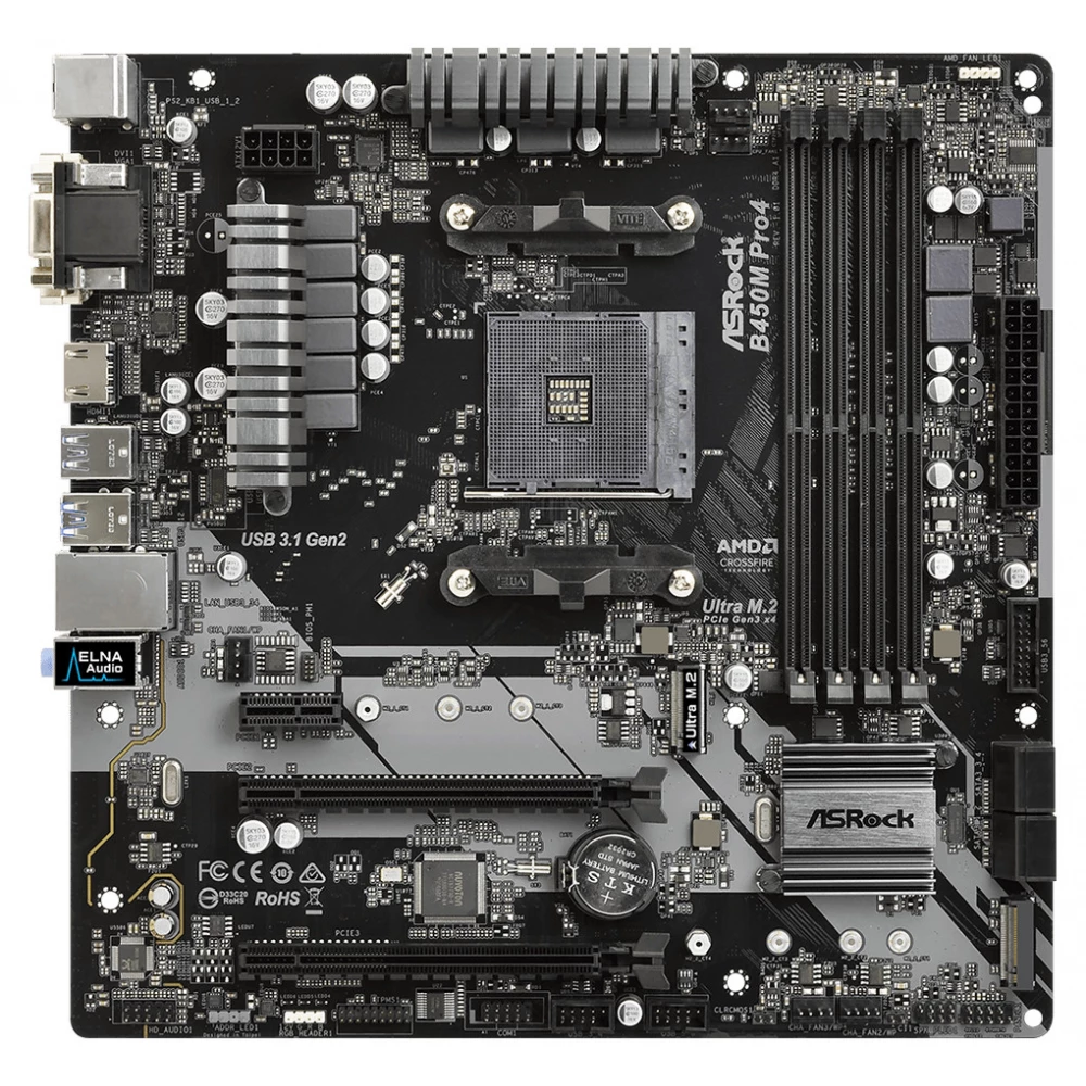 Az ASRock B450M-Pro4 alaplapon a hangtechnológia is lenyűgöző. Az alaplap 7.1 csatornás HD audióval rendelkezik, amelyet az ELNA Audio kondenzátorok hajtanak. Ez növeli az Audiós minőségét és a gaming élményt.