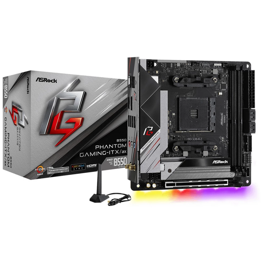 A B550 Phantom Gaming-ITX/ax 2.5 Gigabit LAN-ja, az Intel Wi-Fi 6 és a Bluetooth 5.2 révén a hálózati kapcsolatok sebessége és hatékonysága szintén növelt.