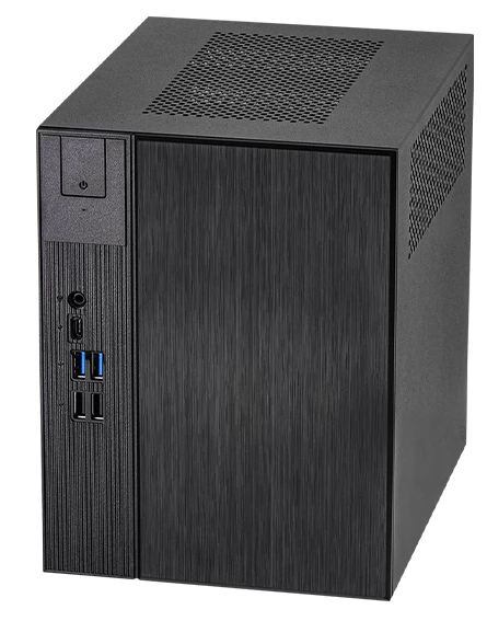 Kis méretű számítógép ház alaplappal, tápegységgel.