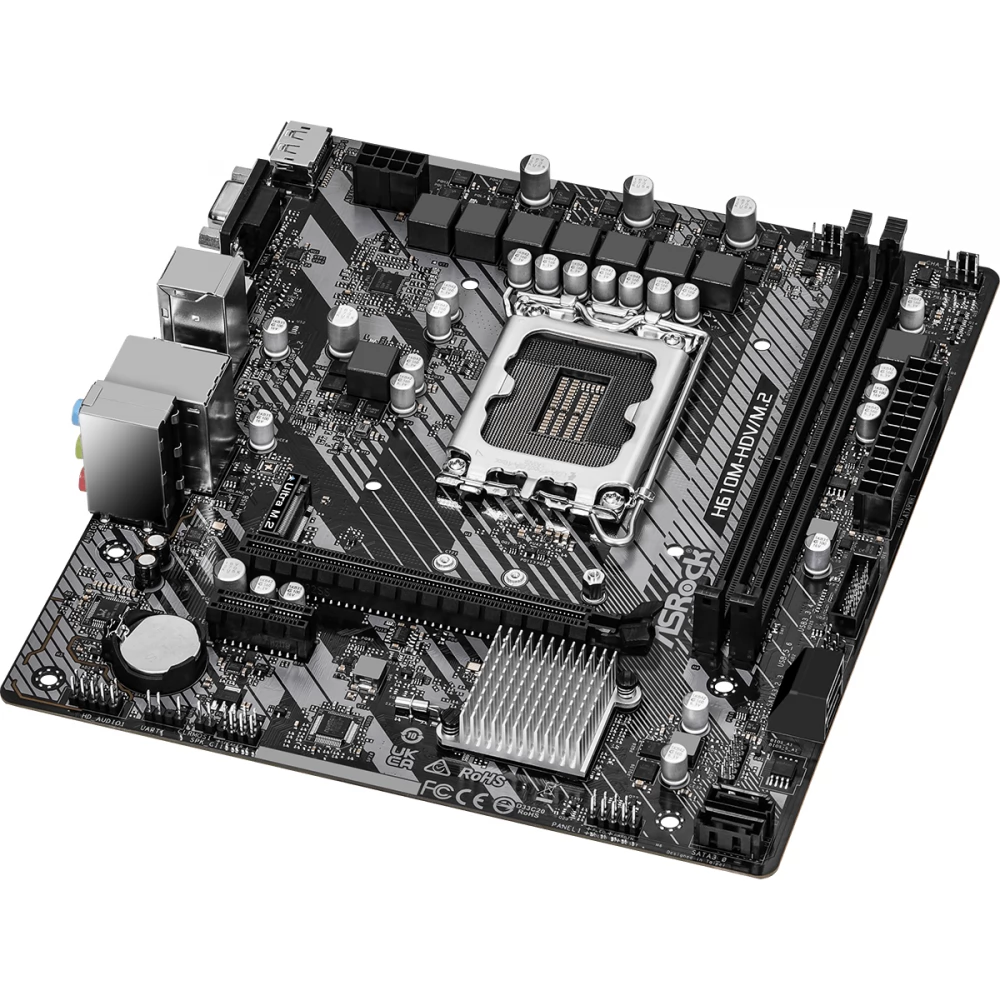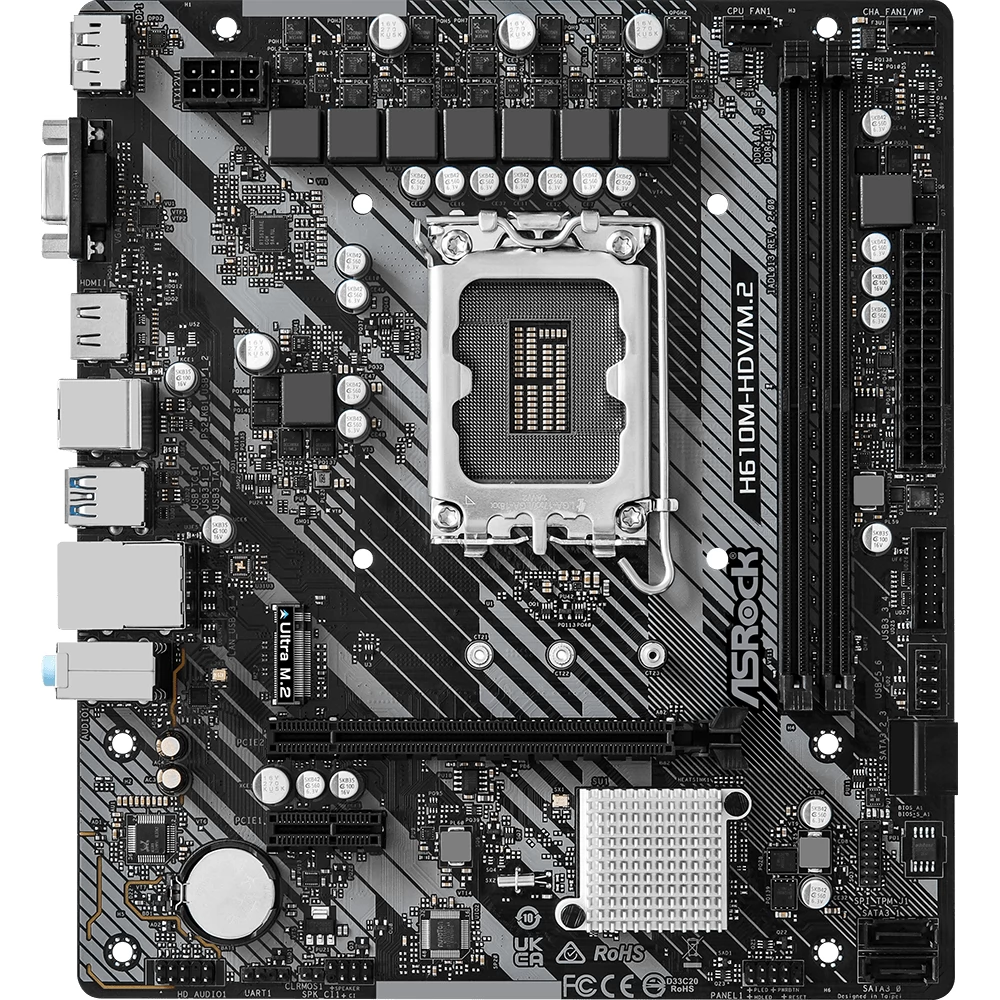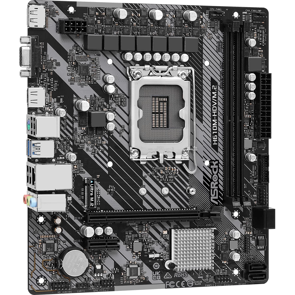 Az ASRock H610M-HDV/M.2 R2.0 az Intel H610 chipsetre épül, amely a 12., 13. és 14. generációs Intel Core processzorok támogatására lett kialakítva. Ez a Micro ATX formátumú alaplap nagy teljesítményt és kiemelkedő funkcionalitást kínál a középkategóriás piacon, mely ideális választás lehet játékosok és teljesítményorientált felhasználók számára. A lap különleges dizájnjával és tartós anyaghasználatával szintén kiemelkedik, biztosítva a rendszer stabilitását és tartósságát hosszú távon.