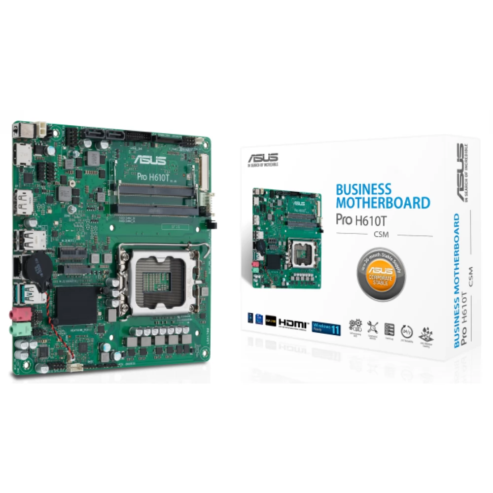 Az ASUS Pro H610T-CSM alaplap a modern vállalati környezet igényeit szem előtt tartva lett tervezve, különös tekintettel a kompaktságra és rugalmasságra. Ez a Thin Mini-ITX formátumú alaplap támogatja a 13. és 12. generációs Intel® Core™ processzorokat, így biztosítva a korszerű számítási teljesítményt a vállalati felhasználók számára. Az alaplap az ASUS Corporate Stable Model (CSM) program része, amely garantálja a termék hosszú távú elérhetőségét és stabil támogatását, így kiválóan alkalmas olyan vállalatok számára, ahol fontos a termék életciklusának előrejelzése és kezelése.