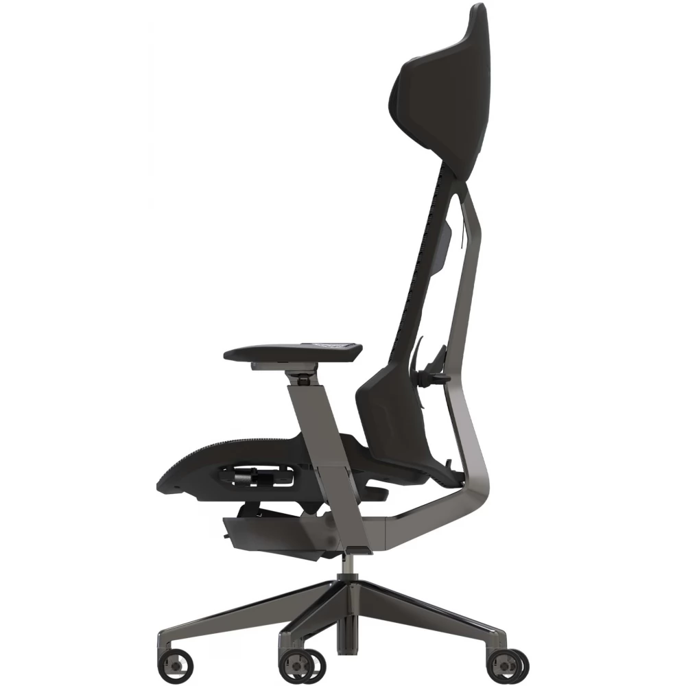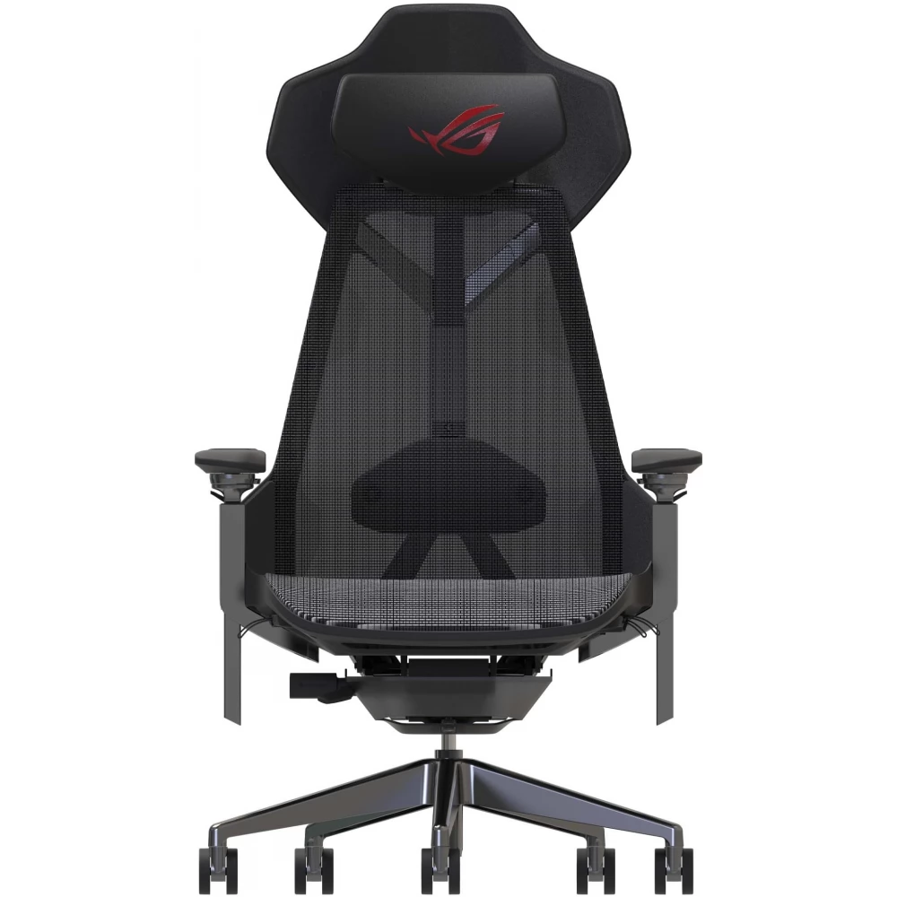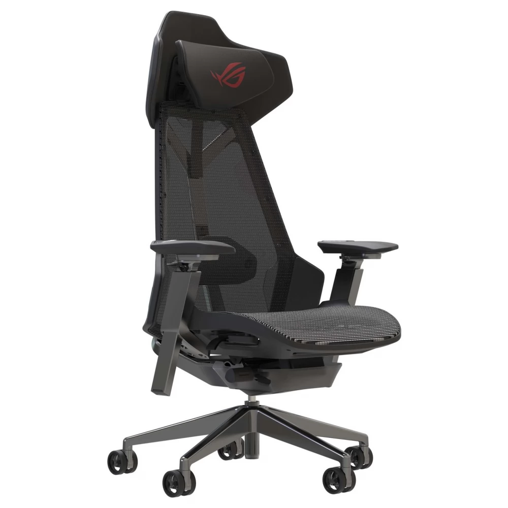ROG Destrier Ergo Gaming Chair futurisztikus kiborg-esztétikával, változatos székbeállítási lehetőségekkel a tökéletes testhelyzet megtalálásához, mobiljátékos könyöktámasz-mód és akusztikus panel a zavaró környezet kizárásához, a tökéletes elmerüléshez a játékban.
