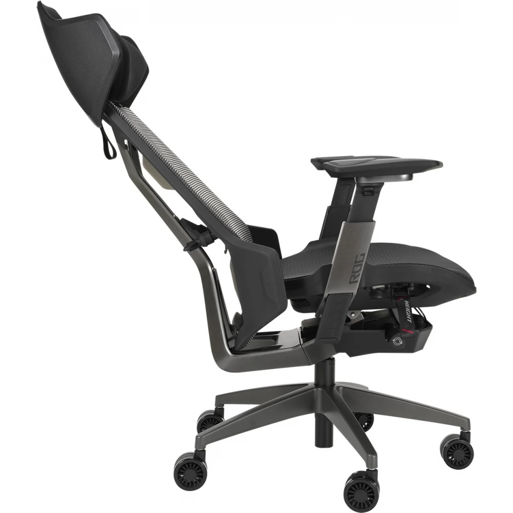 ROG Destrier Ergo gamer szék futurisztikus kiborg-esztétikával, változatos székbeállítási lehetőségekkel a tökéletes testhelyzet megtalálásához, mobiljátékos könyöktámasz-mód és akusztikus panel a zavaró környezet kizárásához, a tökéletes elmerüléshez a játékban.