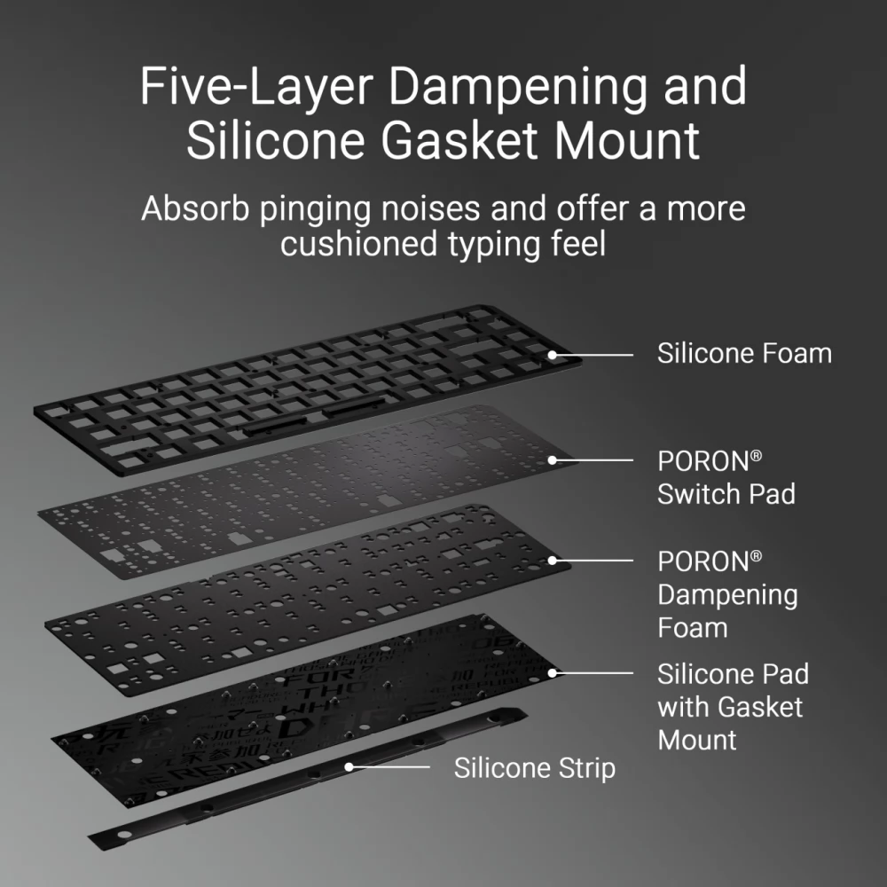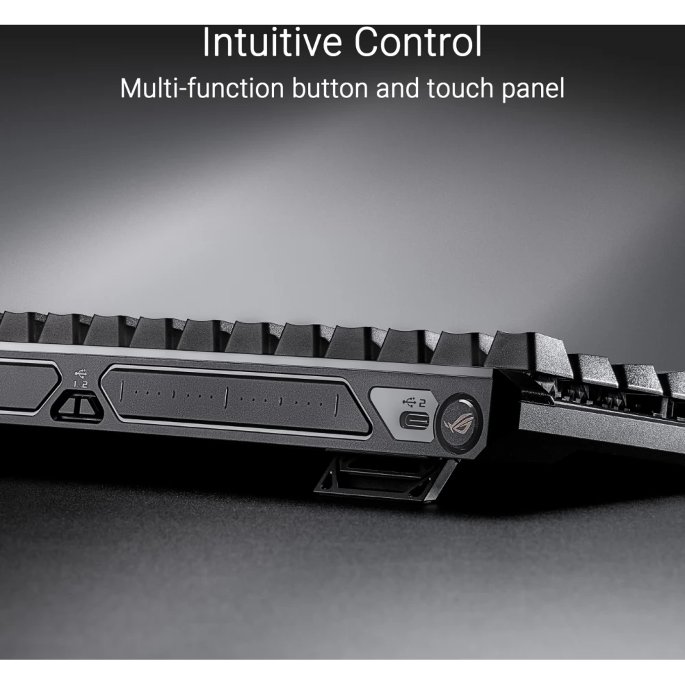 Az ötrétegű csillapítás és szilikongumi hézagkitöltő elnyeli a kattogó hangokat és a rezgéseket, remek gépelésérzetet nyújtva. Egy többfunkciós gomb és egy interaktív érintőpanel segíti az átkapcsolási távolságok intuitív hangolását, emellett a médialejátszás, a hangerő és a billentyűzet fényeinek problémamentes kezelését.