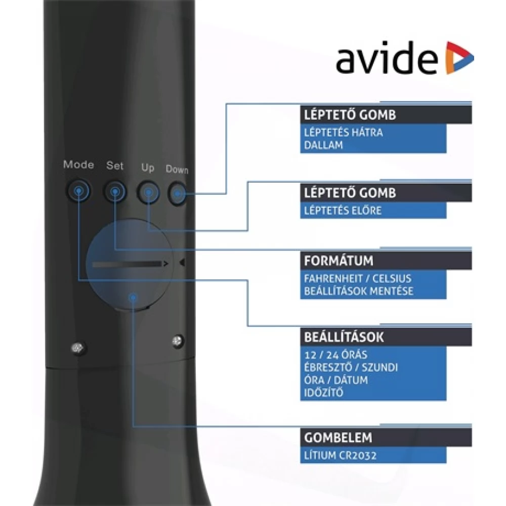 - LCD kijelző naptár, óra, ébresztőóra, dátum és hőmérséklet kijelzéssel: