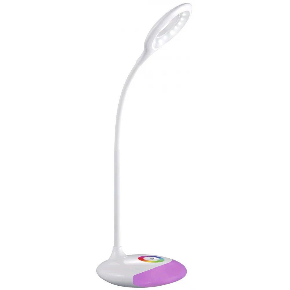 A 4W-os teljesítményű, természetes fehér színhőmérsékletű, 360°-ban forgatható nyakkal és lámpafejjel rendelkező, fényerőszabályozható, beépített akkumulátorral ellátott LED asztali lámpa mindezen felül még RGB hangulatvilágítás funkciót is tartalmaz.