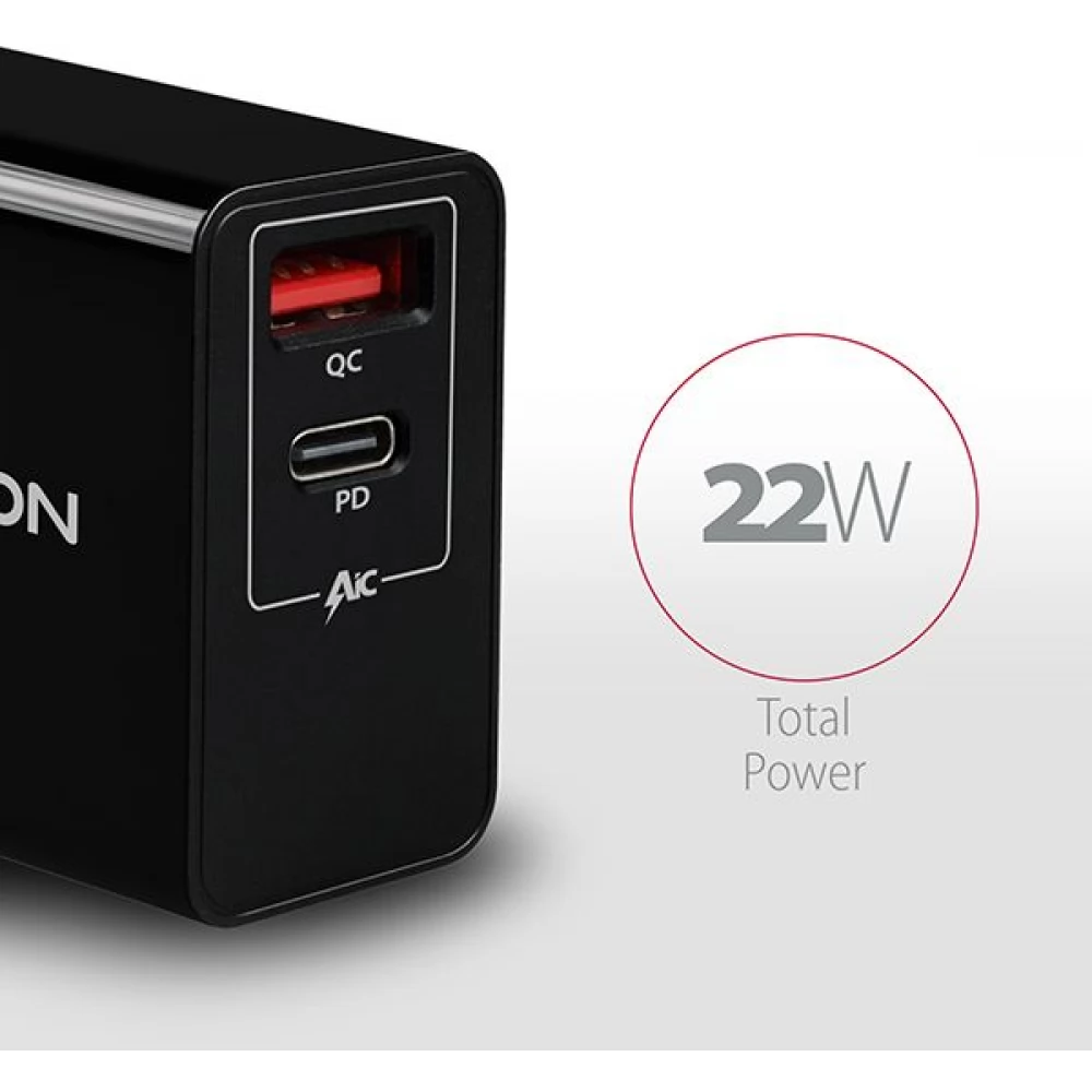 AXAGON ACU-PQ22 QC3.0 + USB-C 22W PD wall charger
