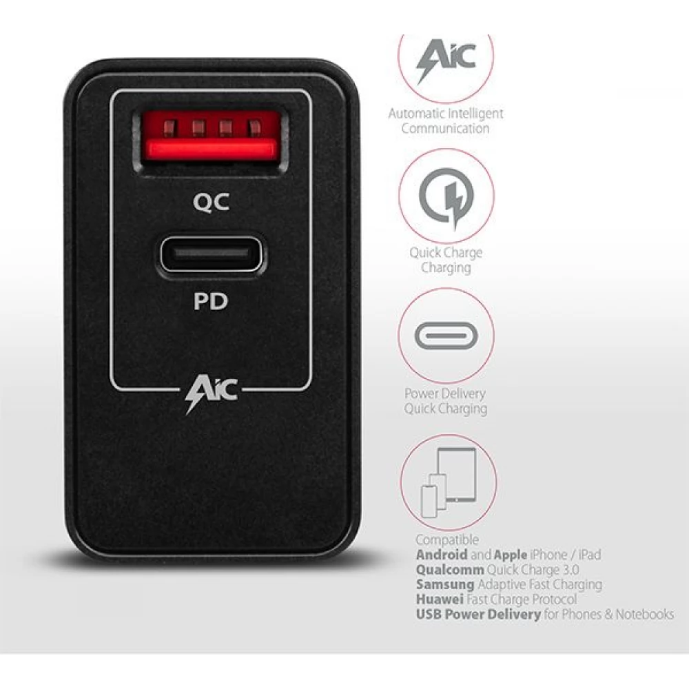 Az AIC funkció felismeri a csatlakoztatott készüléket, és automatikusan kiválasztja az optimális töltési sebességet, a CC funkció stabil töltést biztosít.
