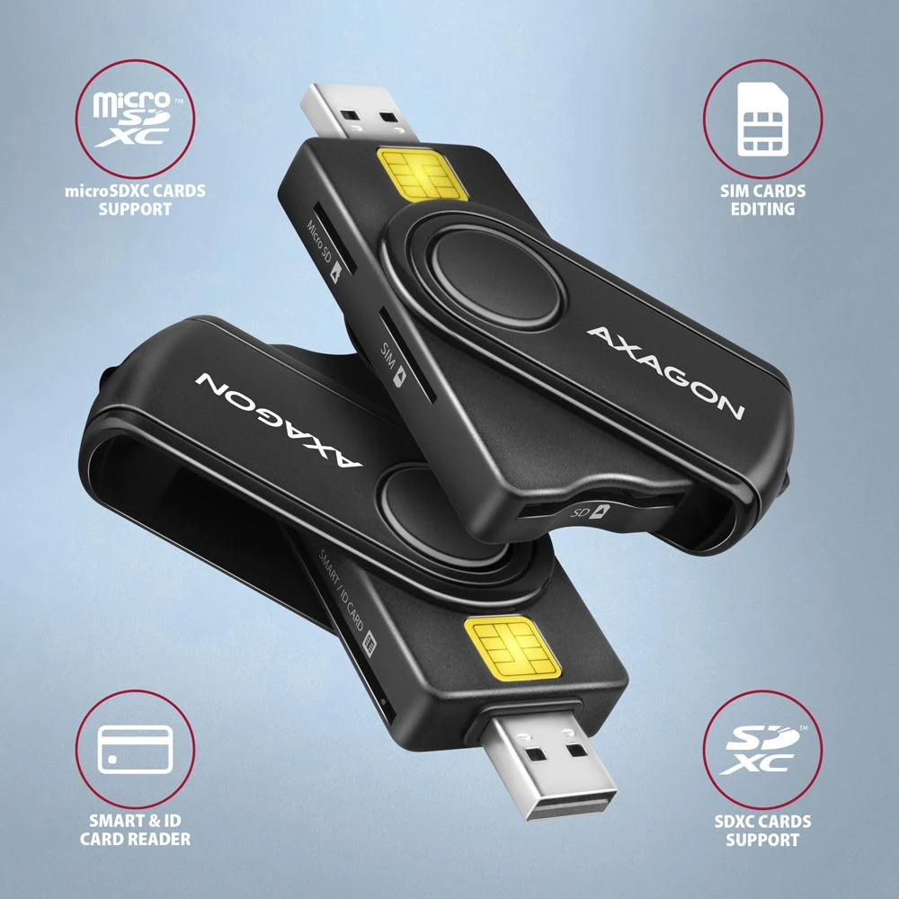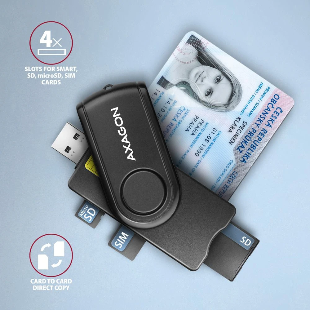 AXAGON CRE-SMP2A 4-slot Smart card PocketReader olvasó fekete