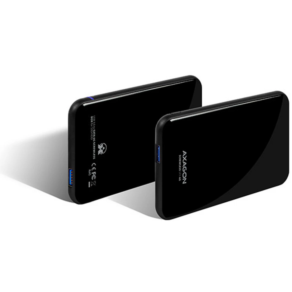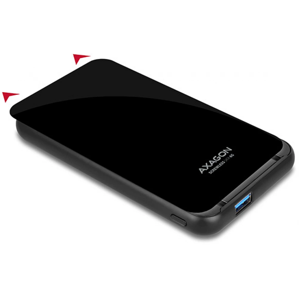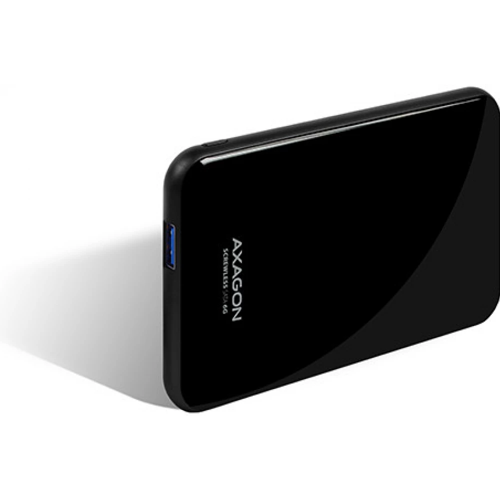 Az univerzális, műanyag AXAGON EE25-S6B SCREWLESS BLACK külső tok USB 3.0 és SATA 6G interfész 2.5" SATA merevlemezekhez és SSD-k számára készült.