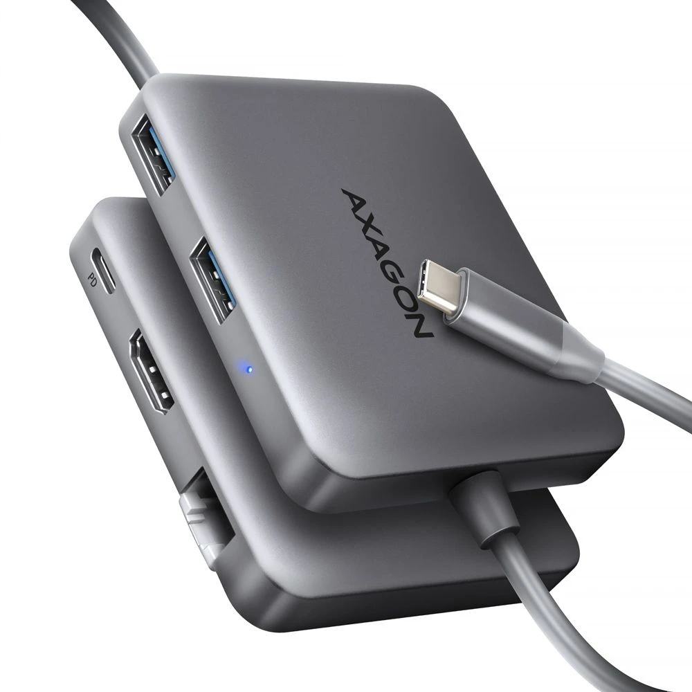 A többportos USB-C 5Gbps AXAGON HMC-5HL hub öt porttal bővíti laptopját. A kétoldalas USB-C csatlakozóval egyszerre és gyorsan akár egy monitort, két USB-eszközt és egy Gigabit Ethernet hálózatot kimenettel csatlakoztathat a számítógépéhez. Lehetőséget kap arra is, hogy a Power Delivery technológiát használó laptopot egyidejűleg táplálja. Az USB-C hub egy univerzális és nagy teljesítményű 5 az 1-ben dokkolóállomást biztosít a modern laptopokhoz.