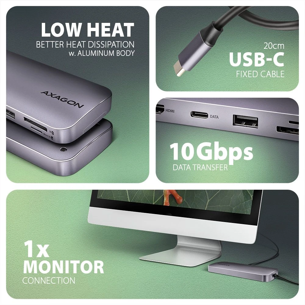 AXAGON HMC-6GM2 USB-C 10Gbps GEN2COMBO 6in1 hub