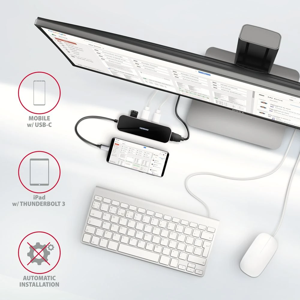 Az hub ideális kiegészítő USB-A csatlakozók nélküli laptopokhoz, kártyaolvasó és video kimeneti. Használhatja meglévő USB-perifériáit anélkül, hogy újakat kellene vásárolnia. A Plug and Play és a Hot Plug funkcióknak köszönhetően maga a hub csatlakoztatása nagyon egyszerű, az nem szükségel bonyolult telepítést, a perifériák egyszerűen csatlakoztathatók és leválaszthatók a számítógép működése közben is. Az elosztó fél az USB-C csatlakozóval rendelkező telefonokhoz való csatlakozás mellett mással is csatlakoztatható. Például csatlakoztathat egy flash meghajtót, billentyűzetet, egeret, képernyőt, TV-t vagy kivetítőt a telefonhoz.