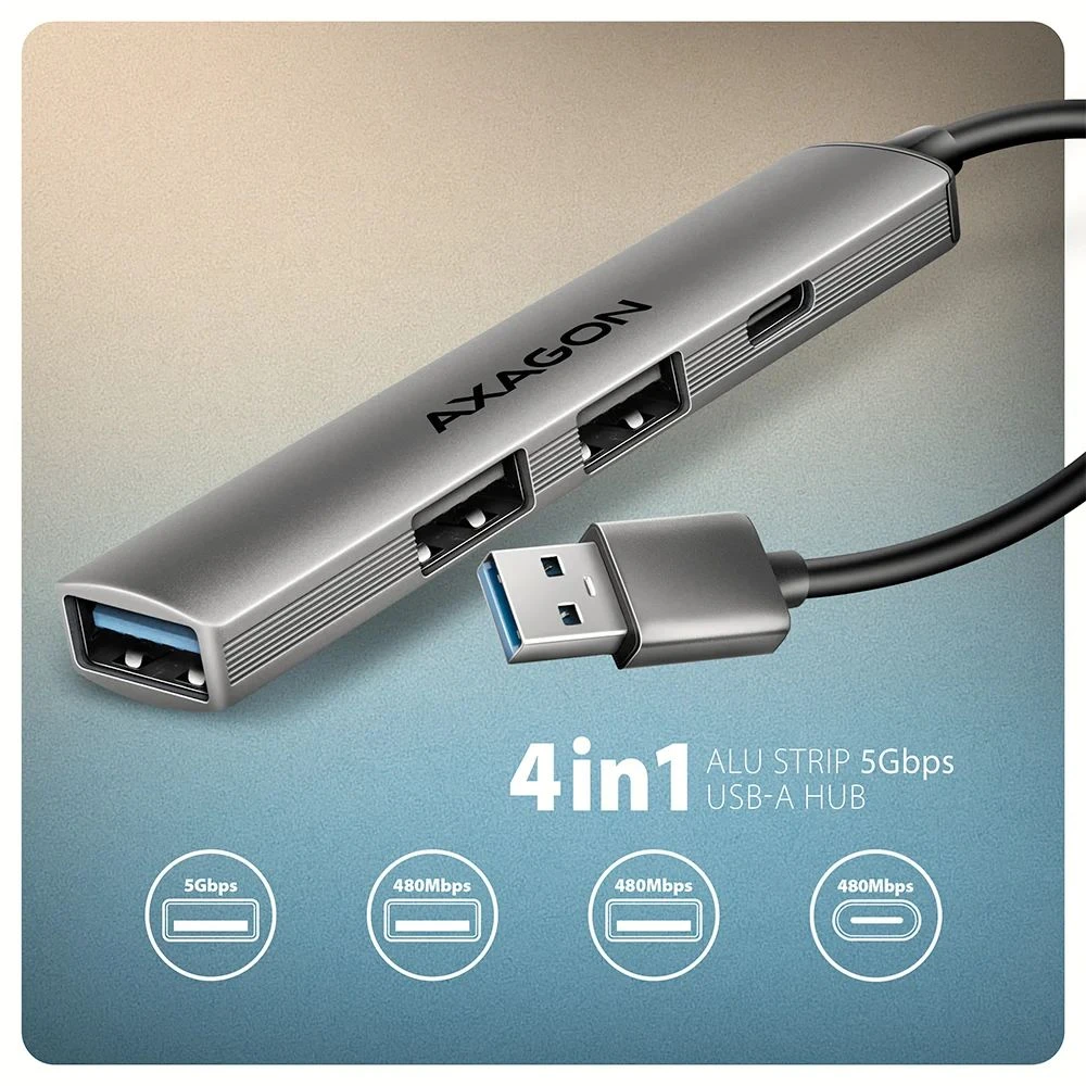 AXAGON HUE-STA ALU STRIP USB-A 4 port hub