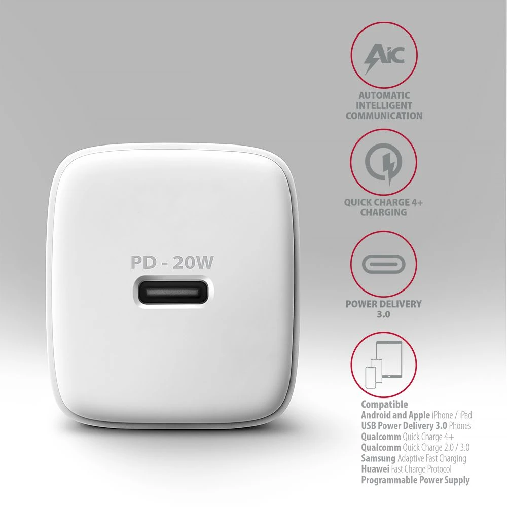 A töltő támogatja a 20 W-os PD töltést az iPhone 12, 13, 14 és 15, valamint azok Pro és Pro Max modelljeihez. Az adapter más gyors telefontöltési szabványokkal is kompatibilis, mint például az Apple iPhone, iPad, Samsung, Huawei, Honor, Xiaomi.