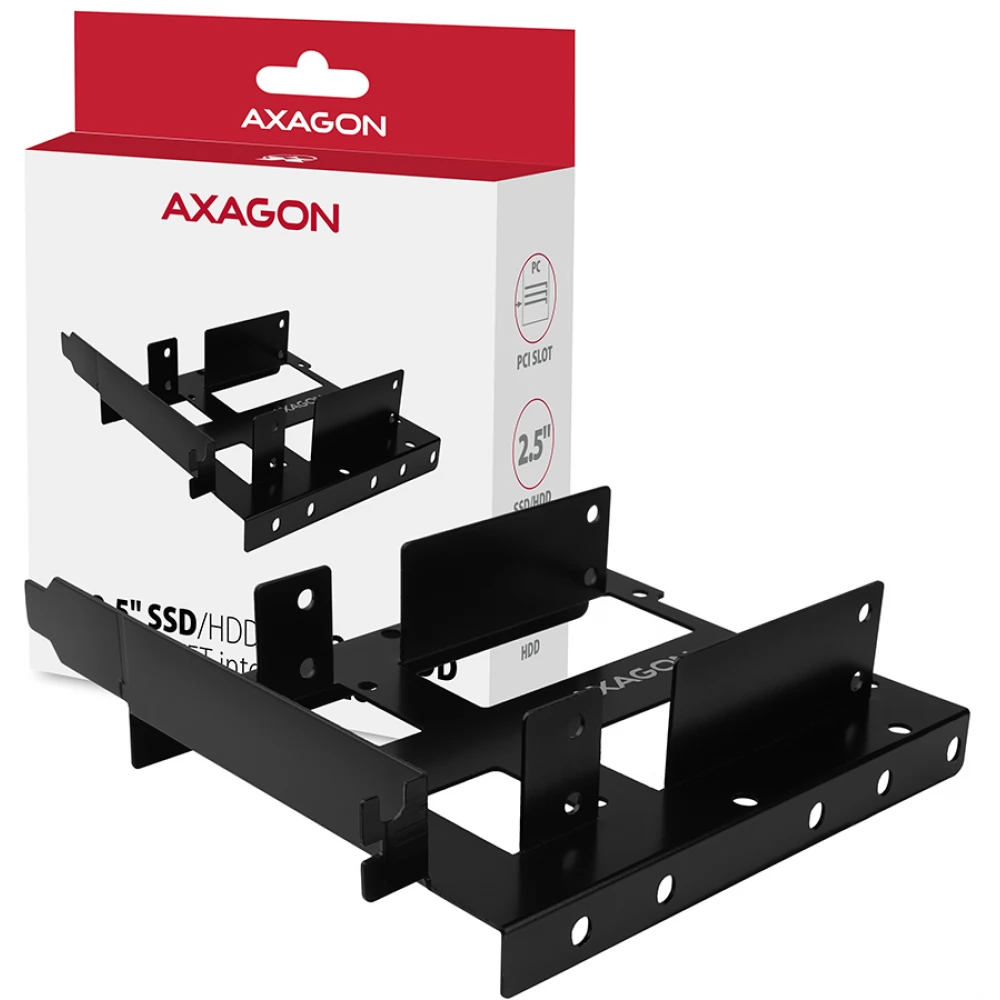 Az AXAGON RHD-P35 alumínium keret két 2.5" HDD/SSD meghajtó rögzítésére egy 3.5" vagy 2.5" helyre PCI/PCIe porton a gépházon belül.
