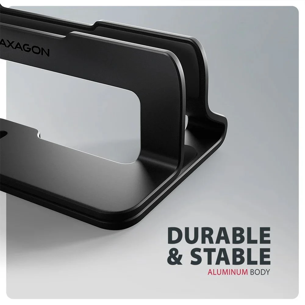 Az AXAGON STND-VB egy elegáns és praktikus laptopvagy tabletállvány, amely lehetővé teszi az eszköz függőleges elhelyezését, segítve a munkaterület rendezettségét és az asztalon lévő hely felszabadítását. 10" és 17,3" közötti képernyőméretű eszközökhöz alkalmas. A kompakt és könnyen hordozható kialakítás kényelmes használatot biztosít otthon, az irodában vagy útközben.