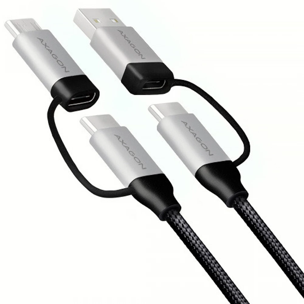 AXAGON USB 2.0 + USB 2.0 Type C USB 2.0 Type C + microUSB Átalakító Fekete-Ezüst 1m BUCMM-CAM10