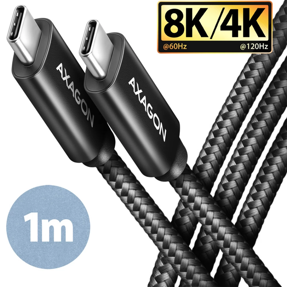 Prémium összekötő USB-C <-> USB-C adat és töltés AXAGON BUCM432-CM10AB NewGEN+ kábel mindkét végén USB-C apa csatlakozóval. A kábel teljes funkcionalitású (Full-featured) csatlakozással rendelkezik az USB4 Gen 3x2 specifikáció szerint és teljes mértékben kompatibilis a Thunderbolt 3 specifikációval. Laptopok, telefonok, táblagépek leggyorsabb adatátvitelére, videoátvitelére és töltésére tervezték. Lehetővé teszi monitorok, dokkolóállomások és külső SSD-meghajtók csatlakoztatását.
