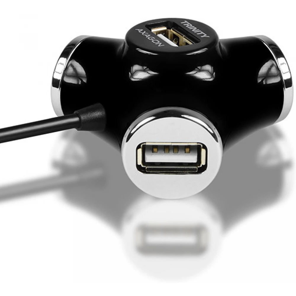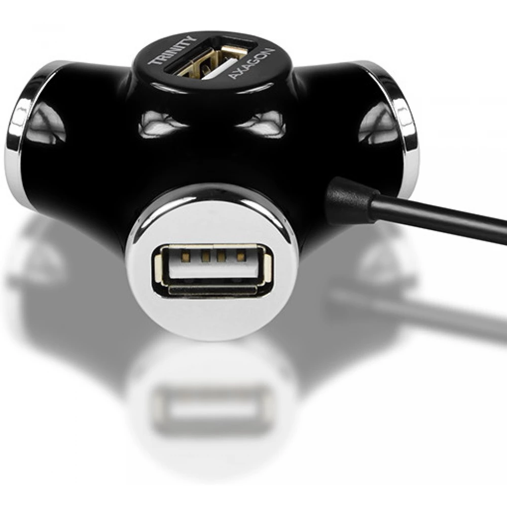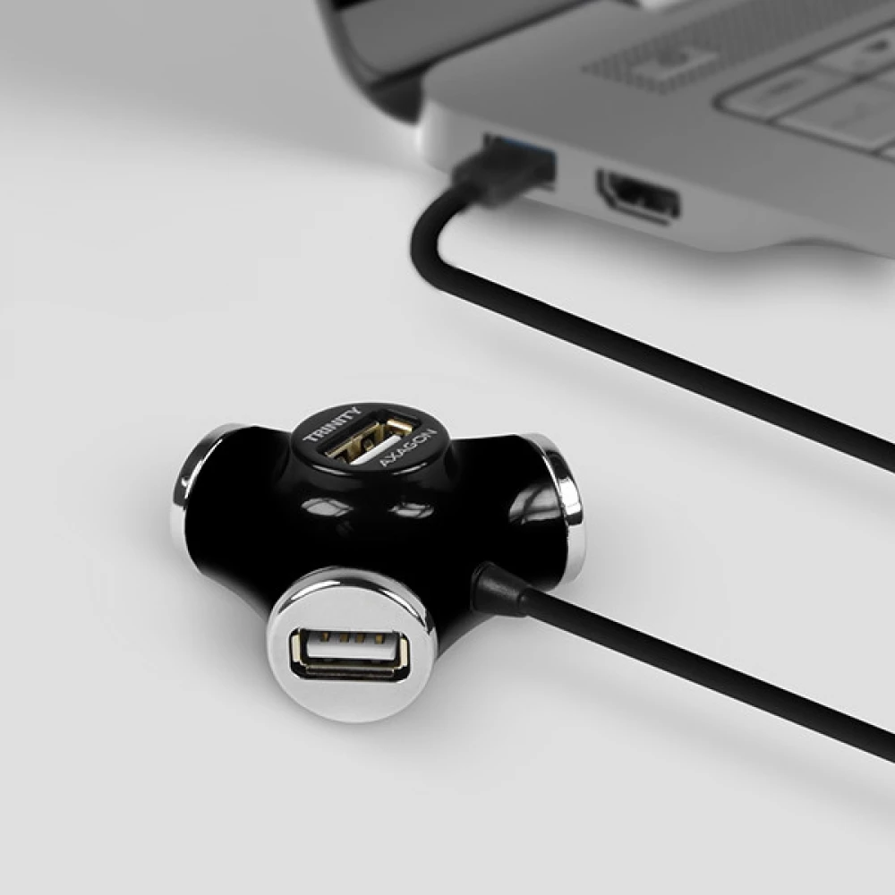 A négy portos AXAGON HUE-X3 USB 2.0 TRINITY hub különösen praktikus kivitelezéssel rendelkezik.