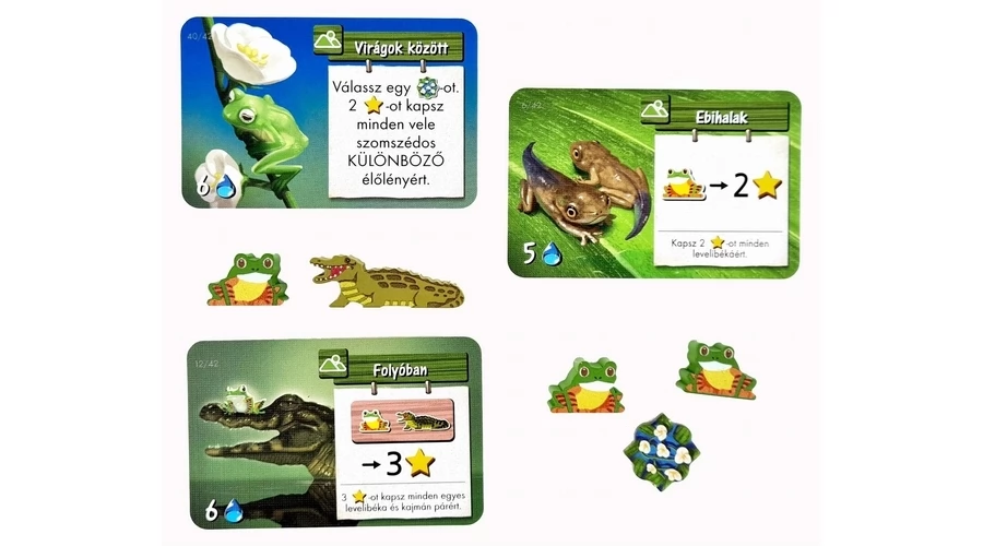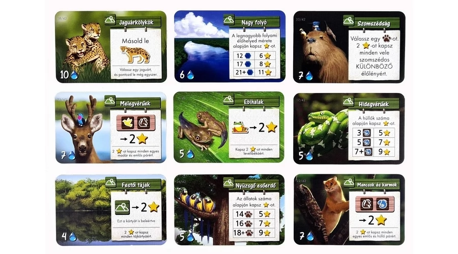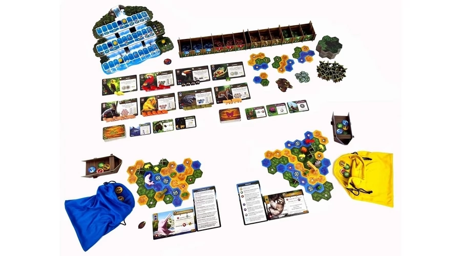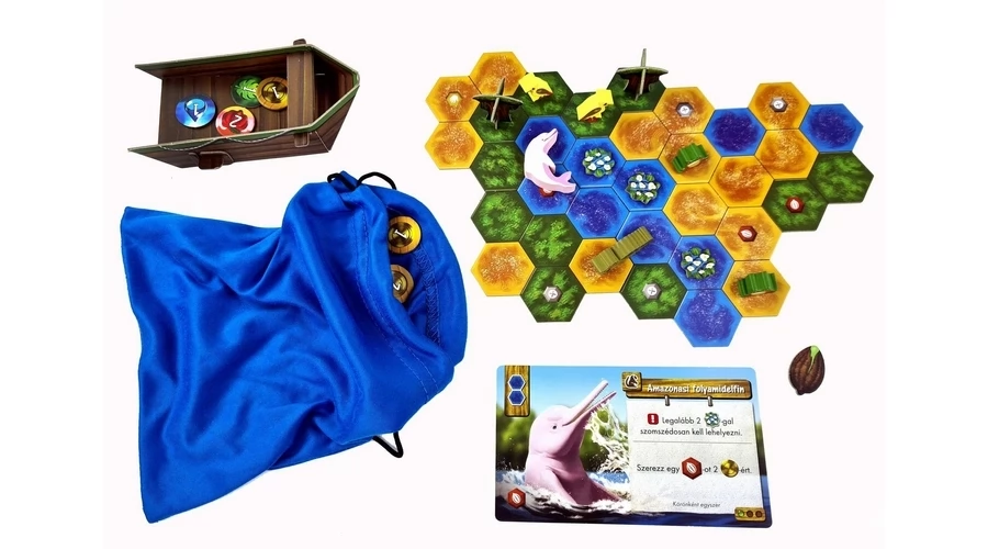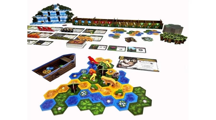 Az Amazónia összetettebb, akcióválasztós családi társasjáték rengeteg különleges alkatrésszel. A játékosok harmonikus természetvédelmi területet építenek ki az őserdő állatai és növényei számára.