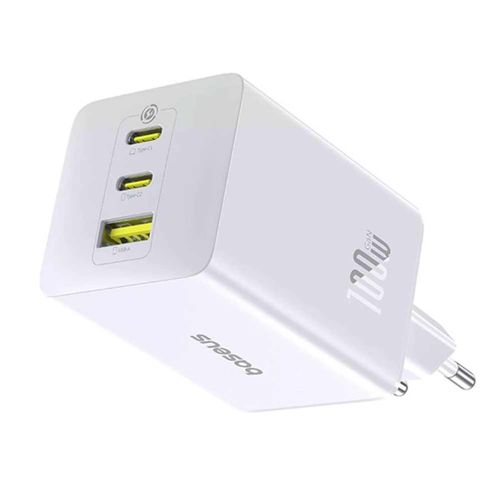 BASEUS ENERFILL FE11 hálózati töltő USB+2 Type-C aljzat 100W. PD gyorstöltő 3.0. FEHÉR