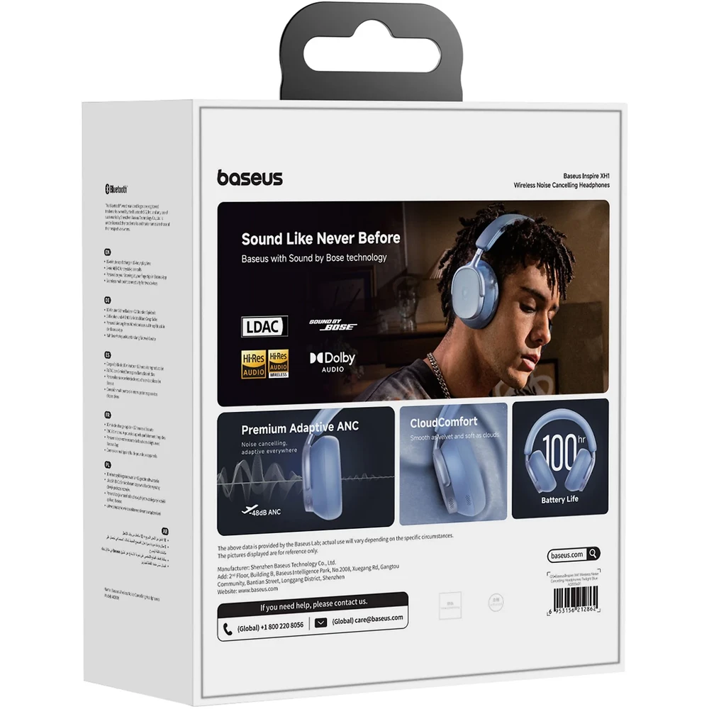 A négyrétegű ANC rendszer irányított mikrofonokkal, döntött akusztikus kamrával és nagy teljesítményű Baseus chipkészlettel működik. Az adaptív rendszer folyamatosan elemzi a környezetet, és automatikusan állítja a zajszűrés mértékét. A BOSE hangkép tisztasága zajos környezetben is megmarad.
