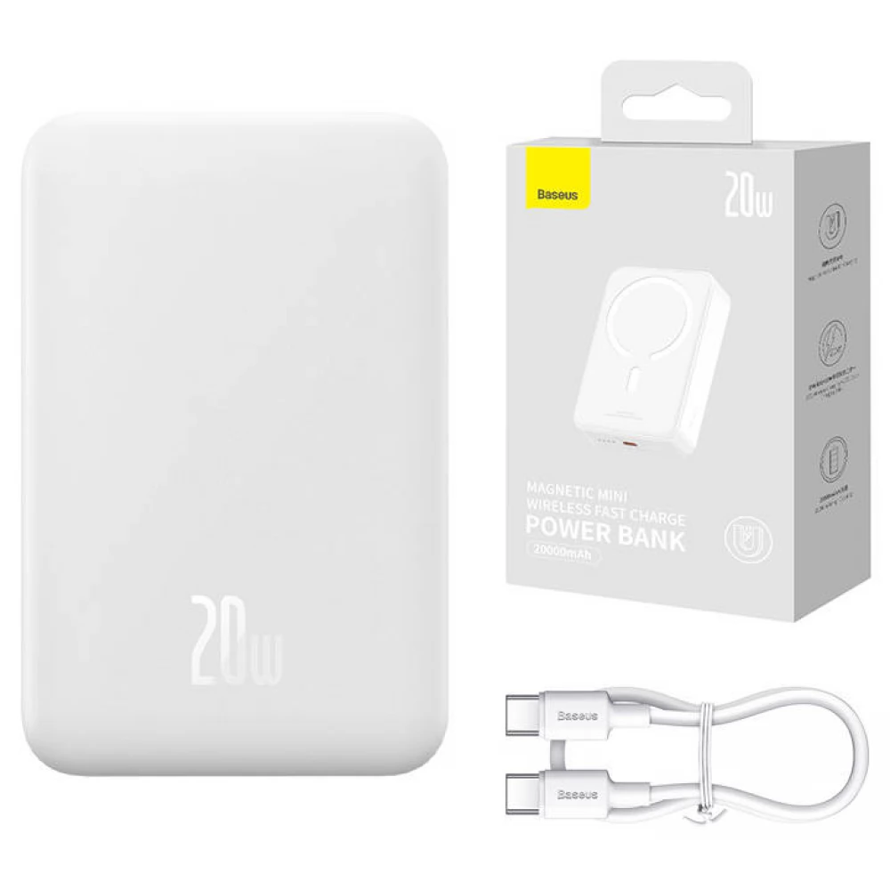 BASEUS Magnetic Mini Power Bank 20000mAh 20W fehér