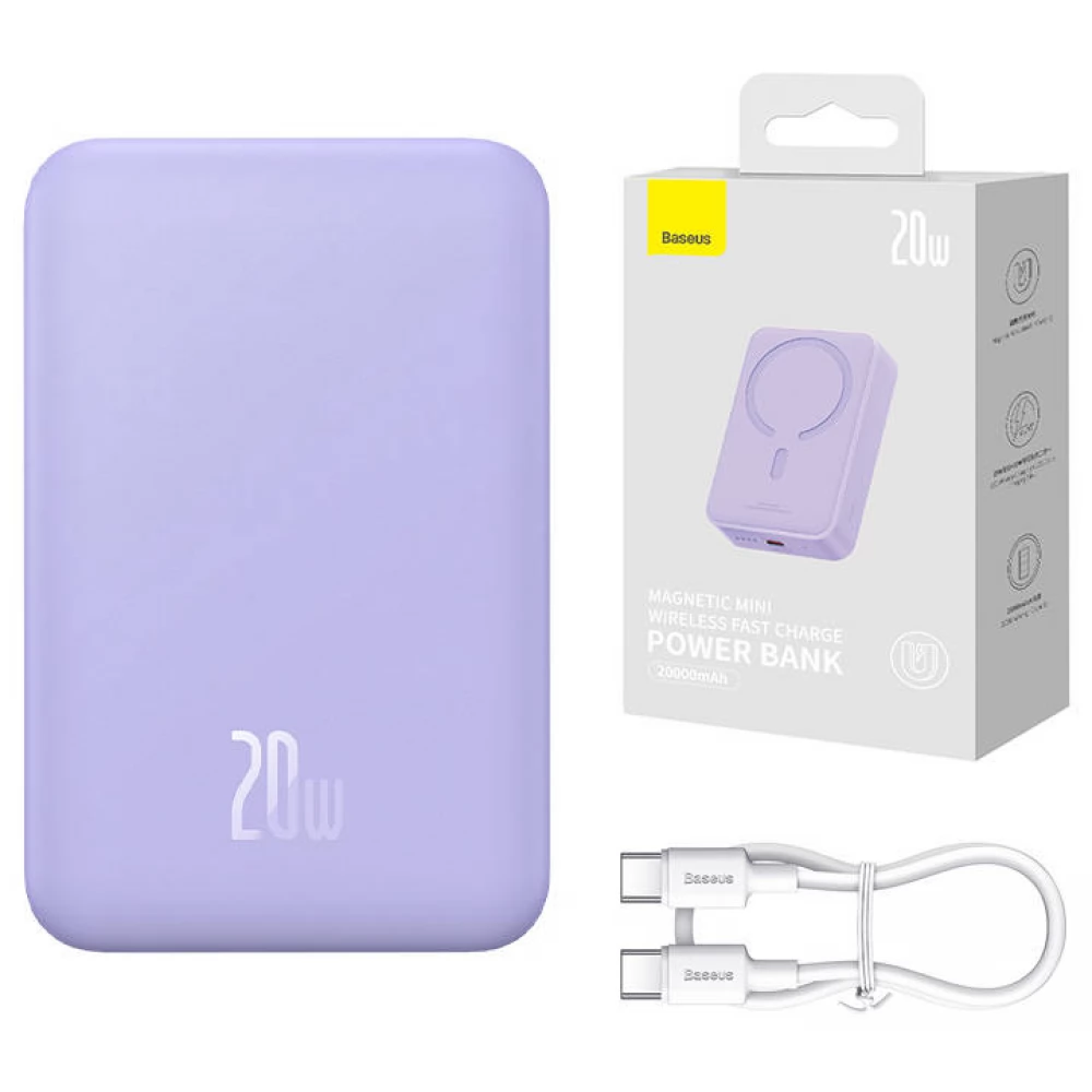 BASEUS Magnetic Mini Power Bank 20000mAh 20W lila